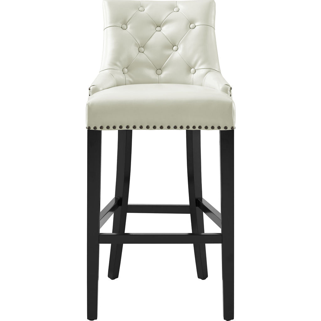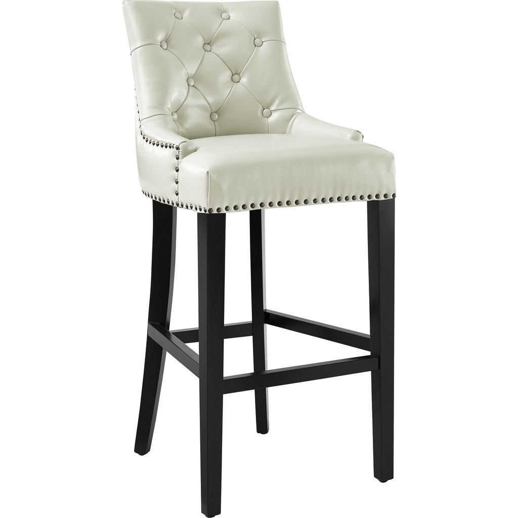 European flair meets Manhattan sophistication to create the Uptown Leather Barstool. Crafted with rich, lustrous leather, a 3.5 inch handle on the back, and finished with hand applied copper nail heads; this stool is comfortable and contemporary. The Uptown stool features a dried wood frame, black stained oak legs to complete its tailored aesthetic.