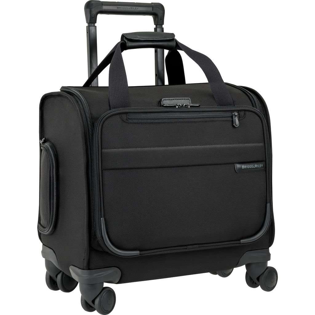 This Rolling Cabin Bag from Briggs and Riley is a versatile carry on option, with effortless 360° navigation featuring four double swivel wheels. Fit it under your seat if needed, or in the overhead compartment easily. The durable construction and clean aesthetic will make the Cabin Spinner in Black a core part of your luggage arsenal.