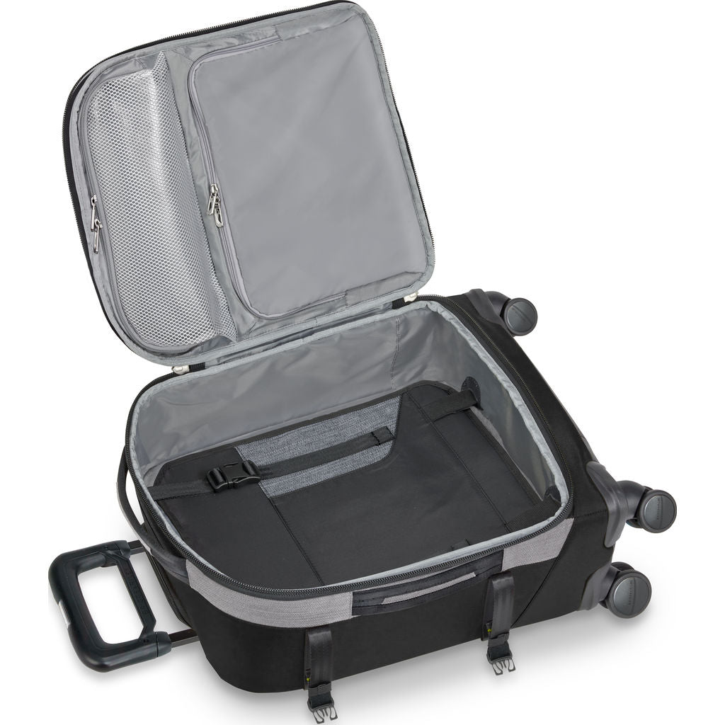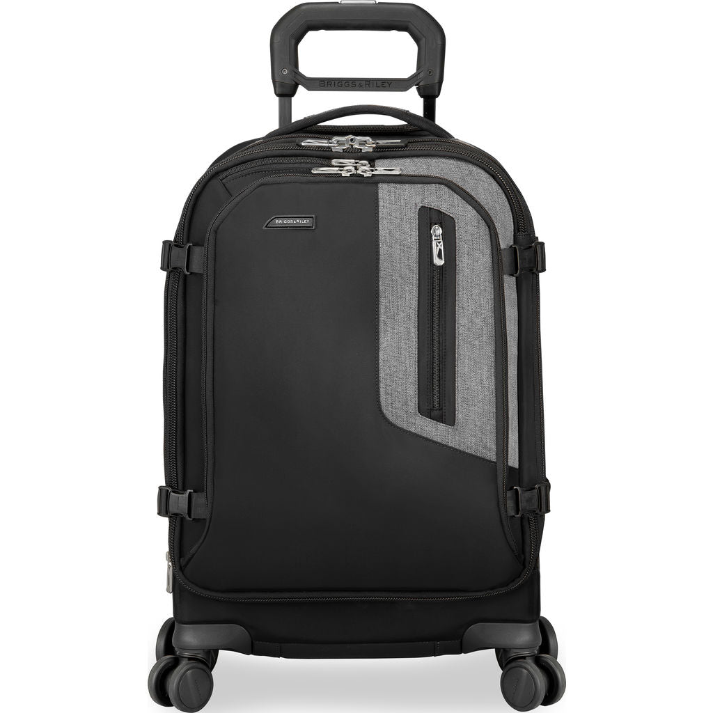 Explore new places with the Black Explore Domestic Expandable Spinner Suitcase from Briggs and Riley. Featuring four double swivel wheels that will ensure effortless 360° navigation. The perfect light weight bag for domestic flights when you are traveling for a quick trip. Made with water resistant materials.