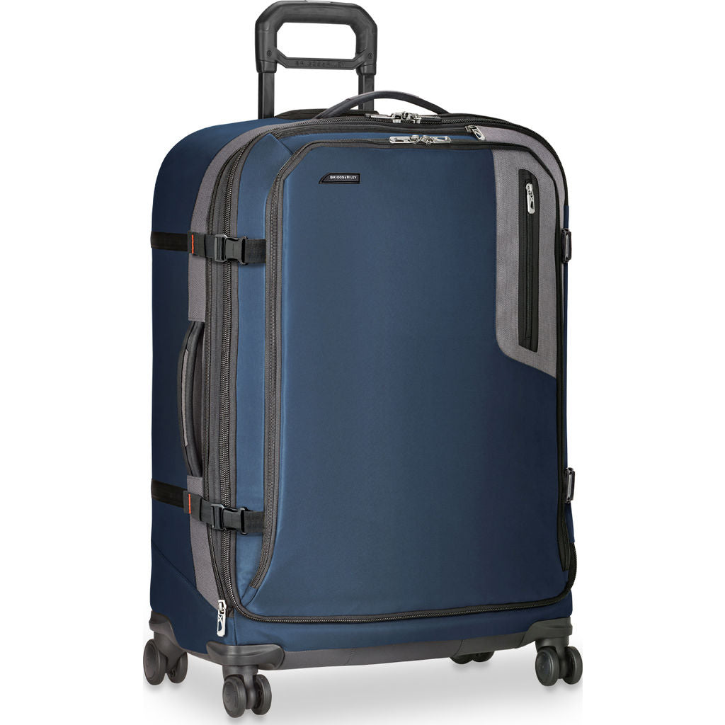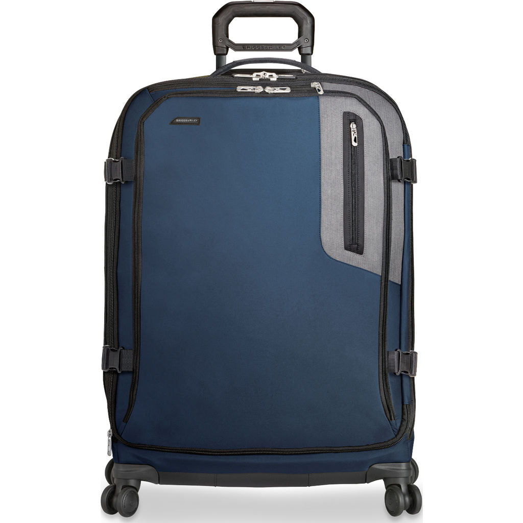 Travel with peace of mind, knowing everything will fit in your bag. The Briggs and Riley Explore Large Expandable Spinner Suitcase in Blue will fit everything you need and more. This large bag is made with 4 double swivel wheels, letting you roll it alongside you with ease. A durable option, crafted with water resistant materials.
