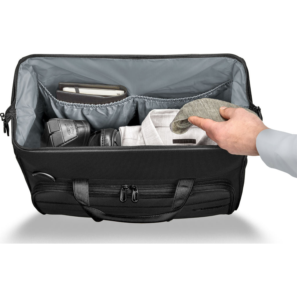 The Black Framed Weekender from Briggs & Riley is the perfect bag for your long weekend. It has a large opening so you can quickly pack and find what you need in your bag. Made with water repellent fabric so your belongings will be protected. This bag comes with a shoulder strap so you can easily carry it.