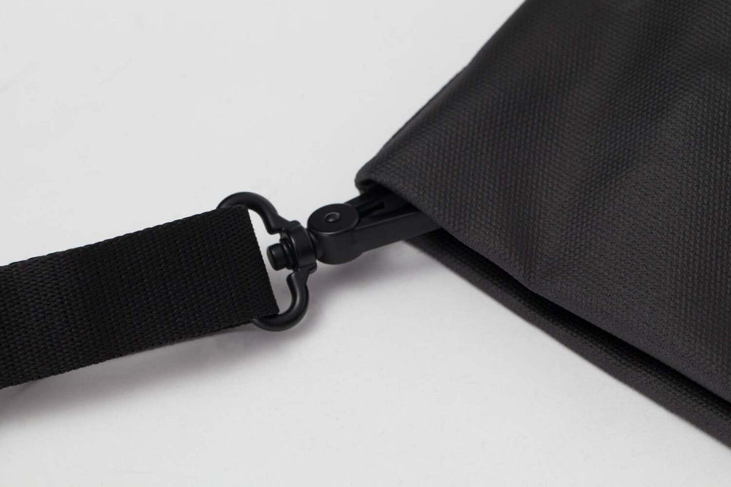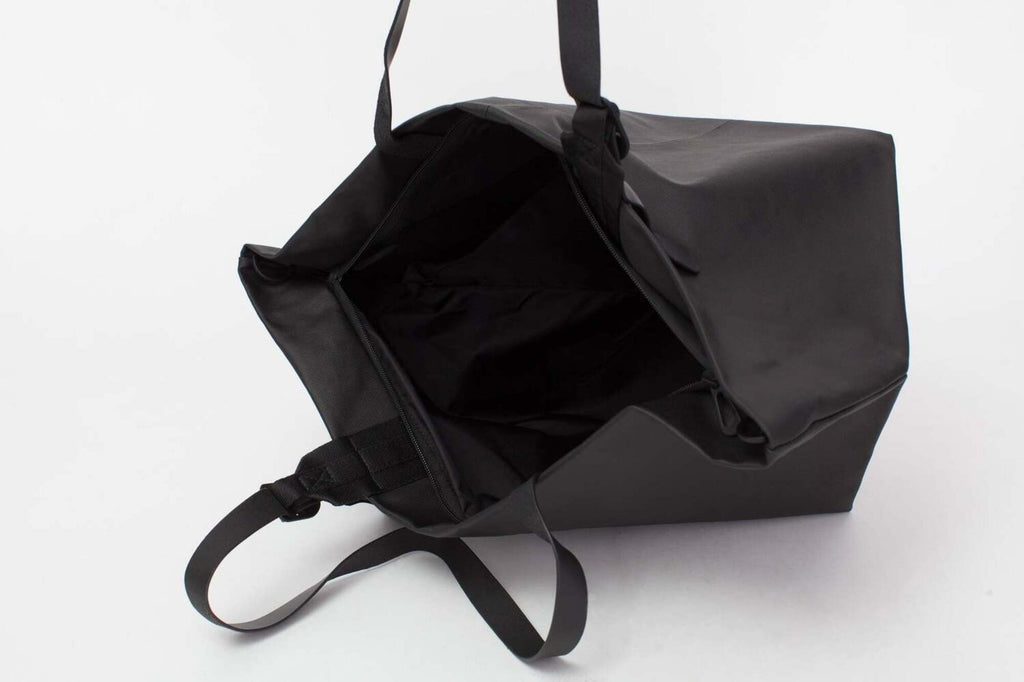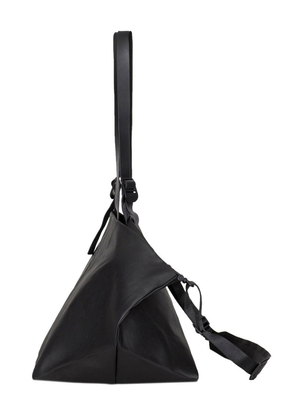 The Côte & Ciel Amu in black coated canvas is a spacious, sculptural tote designed for everyday versatility. Made from durable, water-resistant coated canvas, it can be carried by hand or worn crossbody. Its generous main compartment and secure inner pocket keep essentials organized, while the minimalist black design with knot-detailed handles adds a refined, modern touch. Amu can change shape to create different volumes; This versatile bag can also be worn as a crossbody bag. Made from durable weatherproof canvas, a signature côte & ciel material.