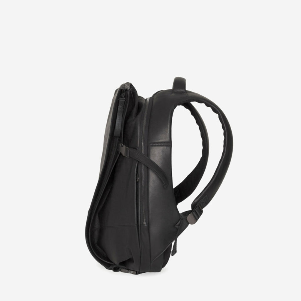 Cote&Ciel backpacks feature futuristic design and functionality. The Isar Small Alias is compact and features practical compartments for everyday personal items. It's crafted from black leather with a soft finish. This material helps keep the backpack looking new longer and is easy to clean.