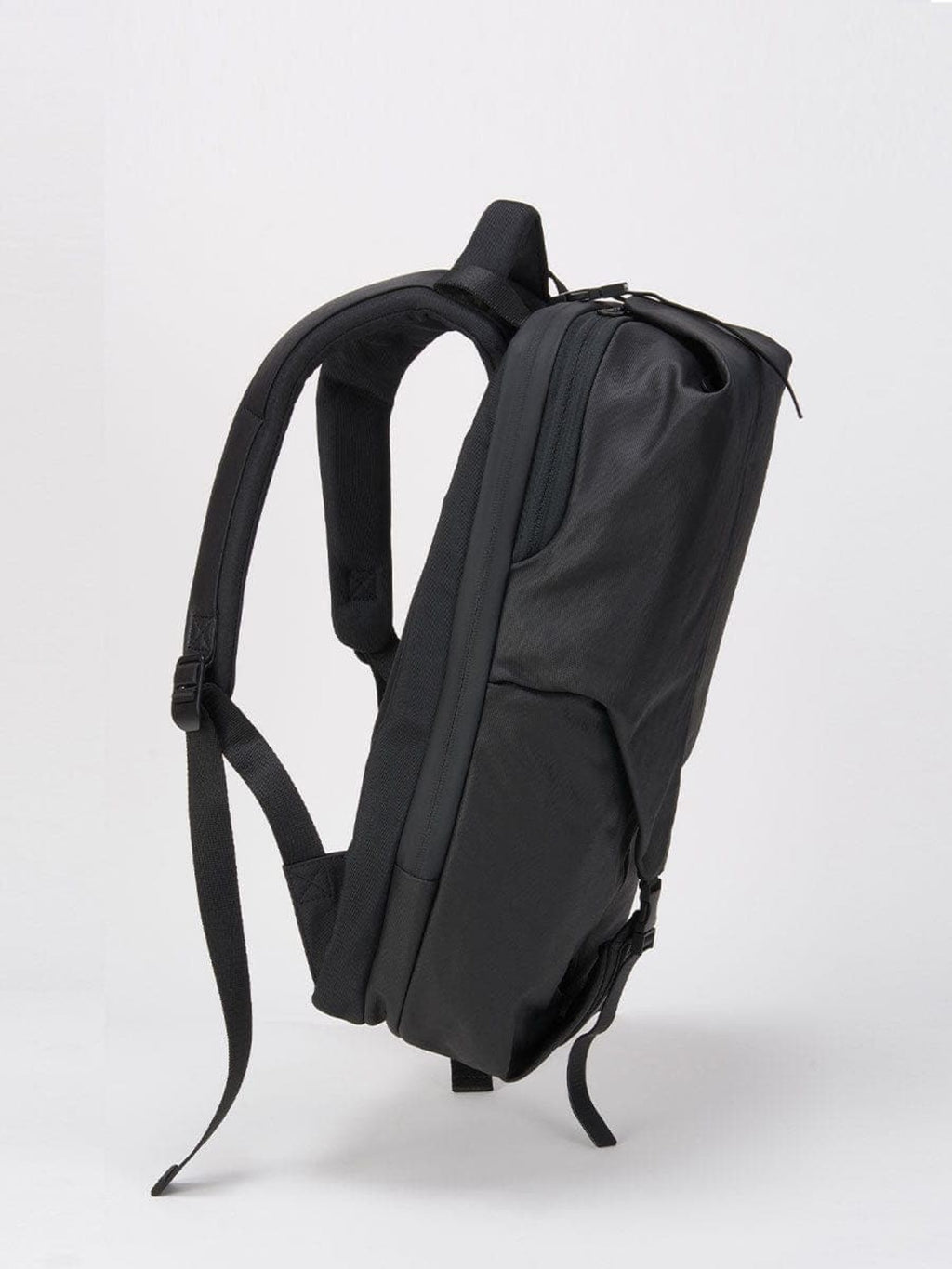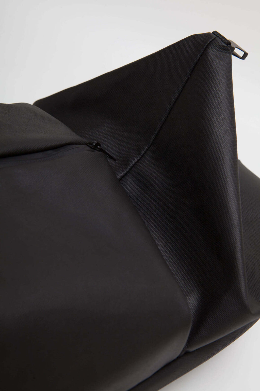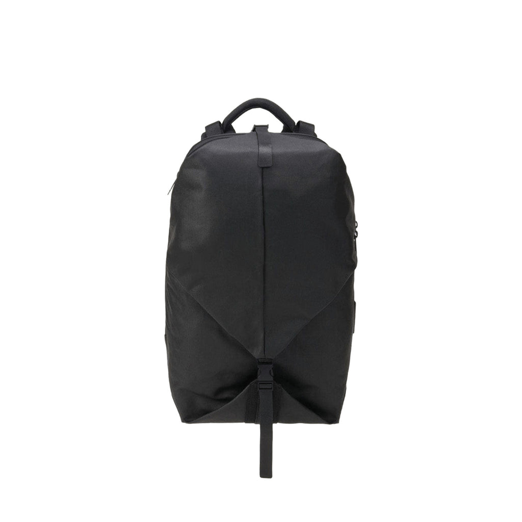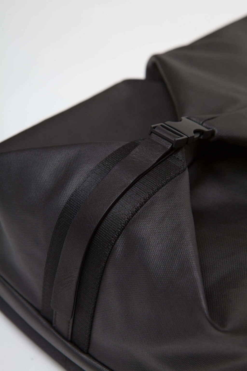 A clever zipper opening in the divider between the lower front and the rear compartments allows the user to reach through for added flexibility. This Oril S is constructed from a water-resistant coated black canvas with additional leather details on the shoulder straps. In addition, the Oril S Coated Canvas has two internal and one external concealed zipped pockets.