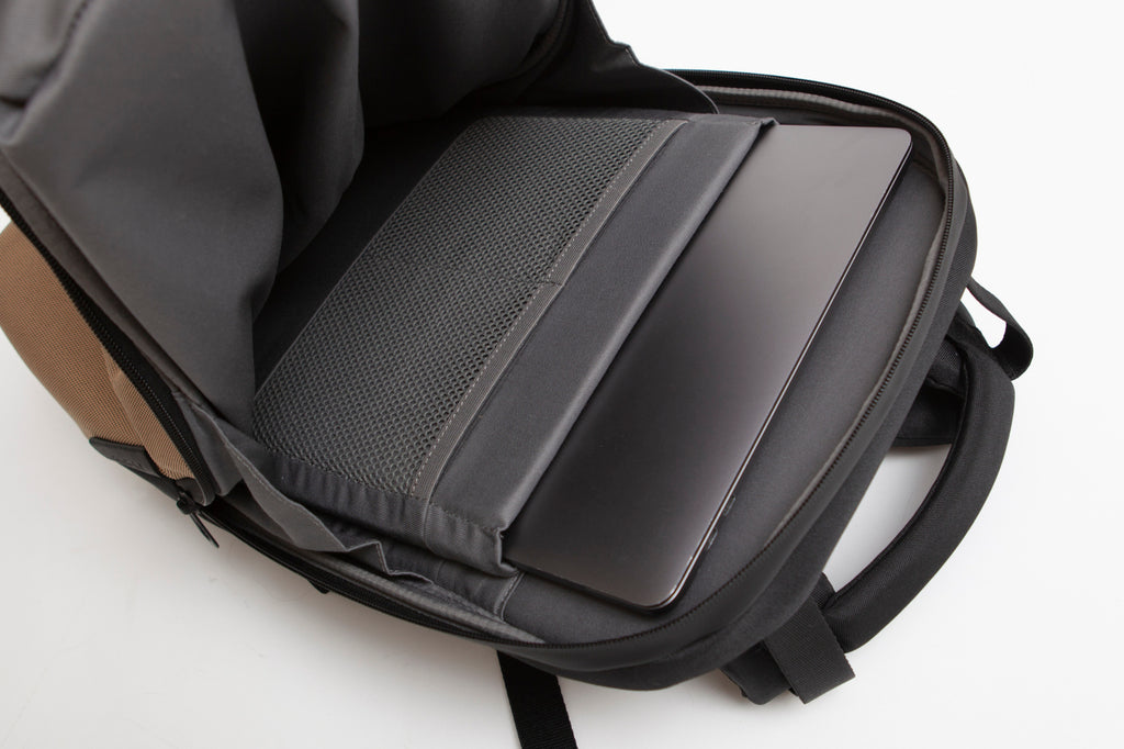 The "Solmonne" series is named after the calm waters of a river in northeastern France. The design, inspired by origami, not only features a sophisticated and fashionable aesthetic but also has the characteristic of fewer seams, making it less prone to deformation. In addition to a cushioned pocket for laptops up to 13 inches, it boasts high functionality with pockets that make it easy to organize small items. It can be stylishly used for daily use as well as for business.