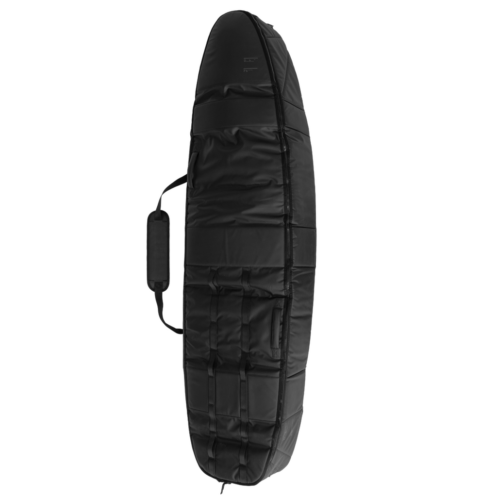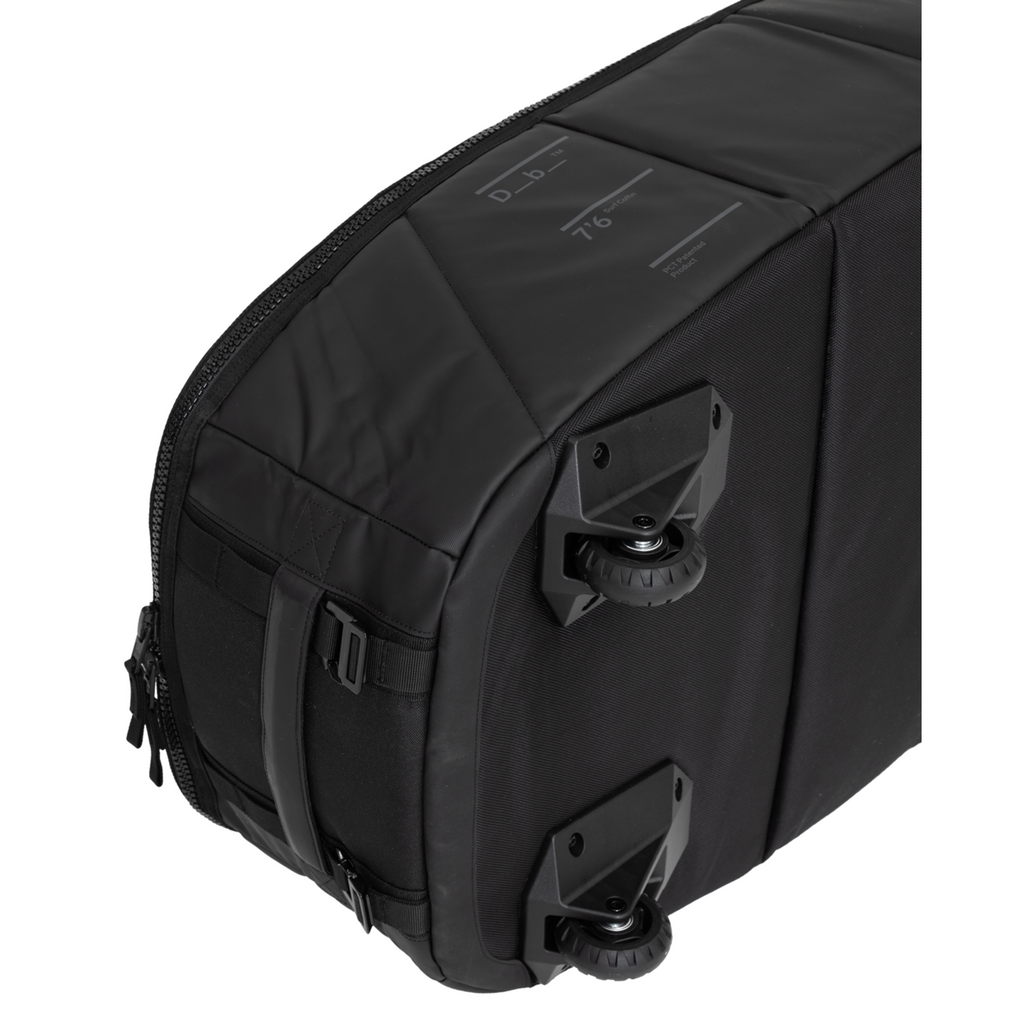 The Db Journey Surf Pro Coffin 250L in Black Out is a fully compressible, rib-protected travel bag designed for 3–4 mid-length boards between 6’5” and 7’6”. Featuring Db’s patented Length Adjustment System™ and Rib Cage Construction™ on the base, it offers maximum protection for your gear. Compressing to just 20% of its size, it’s perfect for efficient travel, while the streamlined Scandinavian design combines style with functionality. Durable, compact, and award-winning, this surf coffin keeps your boards safe and ready for adventure.
