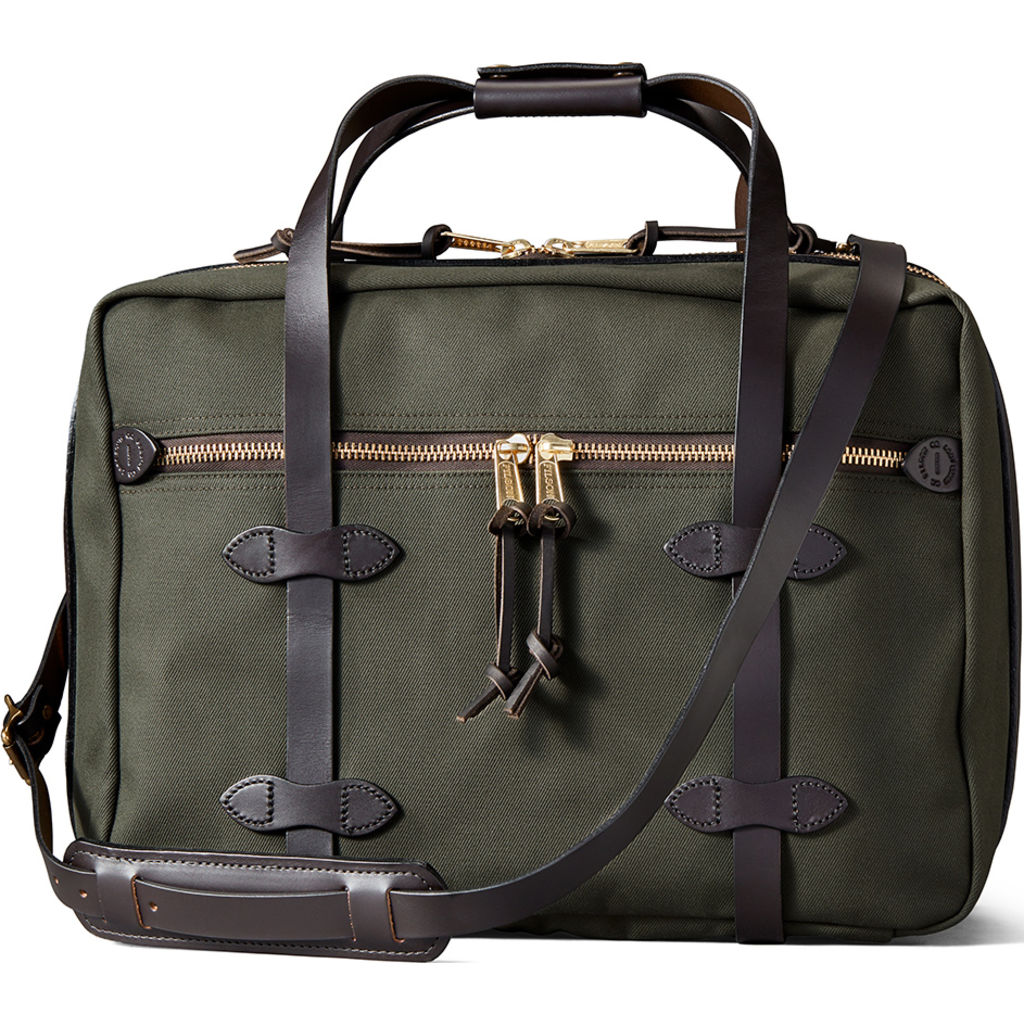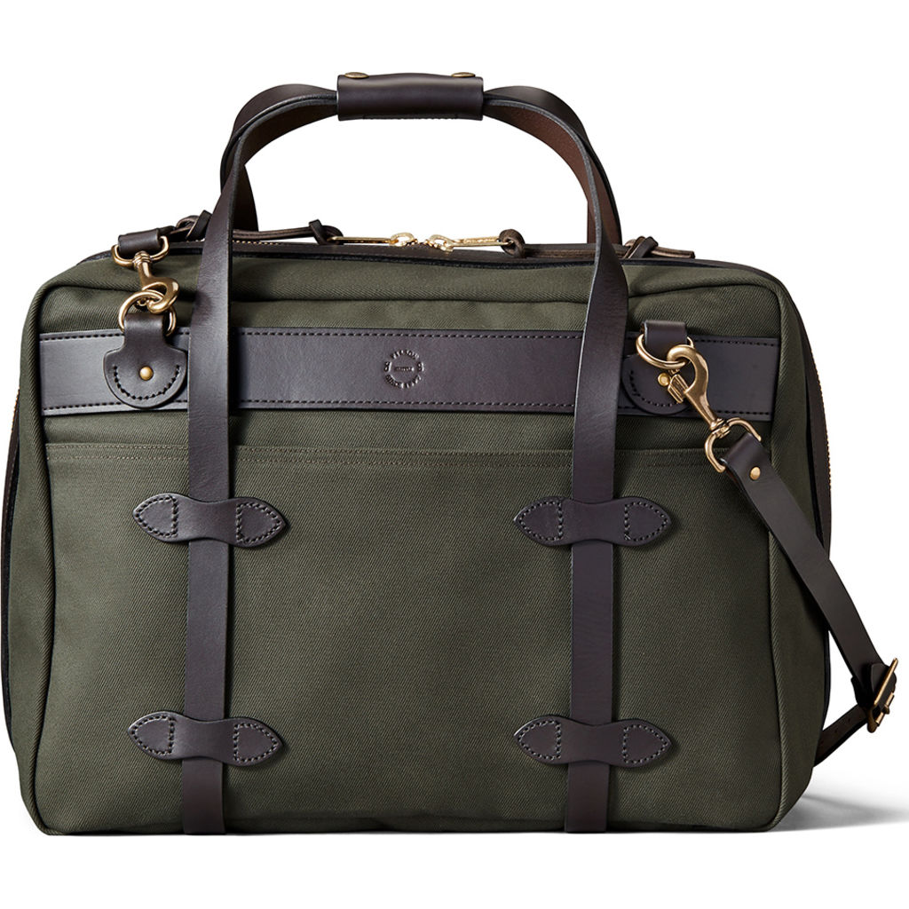 - Solid brass zipper closure custom cut at Filson and allows full bag access