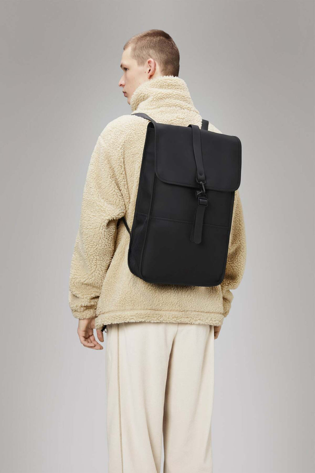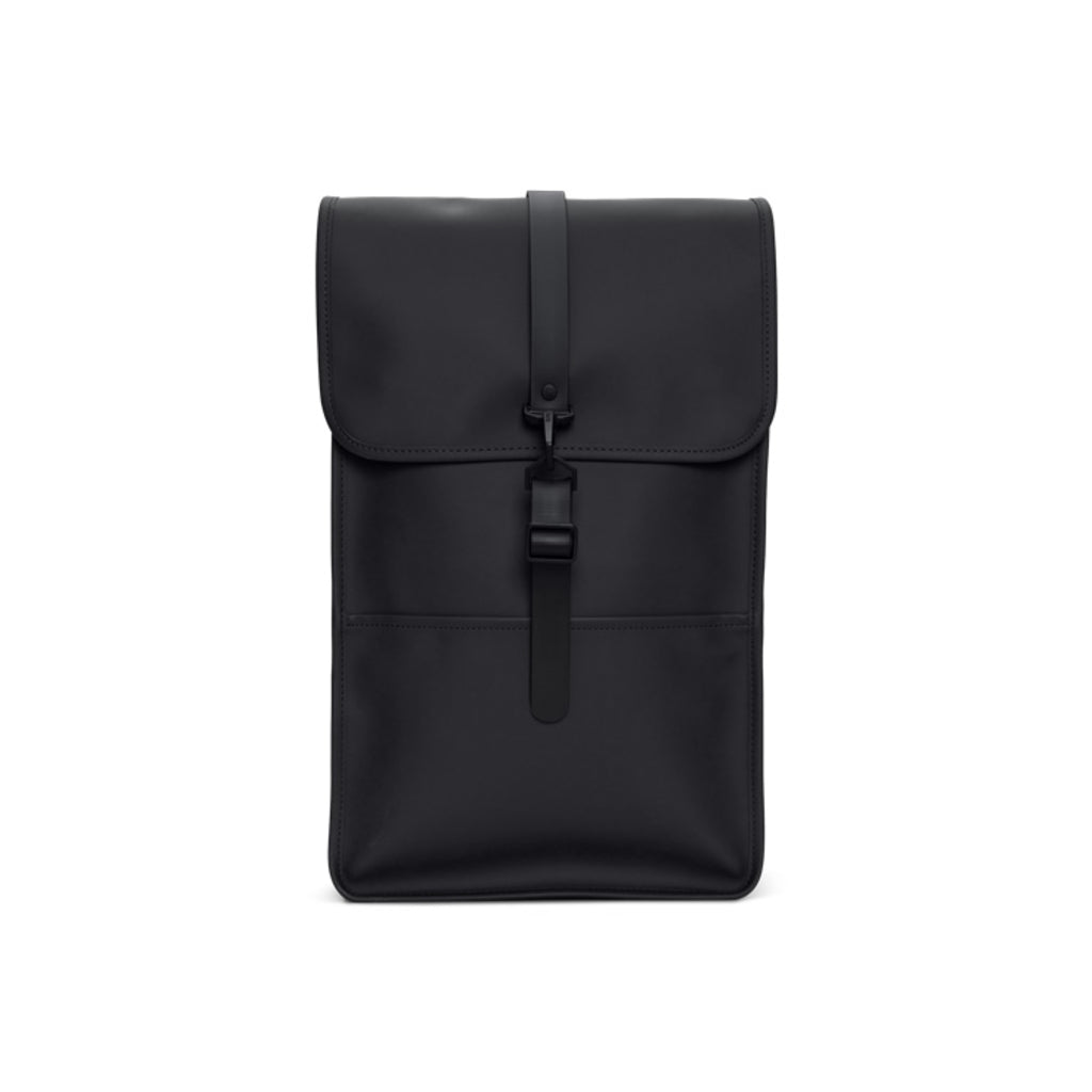 Rains Backpack Black is a true Rains classic made from a water-resistant fabric with a matte finish. Fully lined, this minimalistic yet modern backpack has an inside laptop pocket, a spacious main compartment and a hidden phone pocket on the backside. It is completed with magnetic closings, carabiner details and adjustable straps. Backpack Black is the most popular and iconic bag model from Rains. This minimalistic and functional men’s and women’s backpack is highly valued for both everyday users and travelers. Backpack Black is made from a water-resistant vegan PU material. All zippers are waterproof.