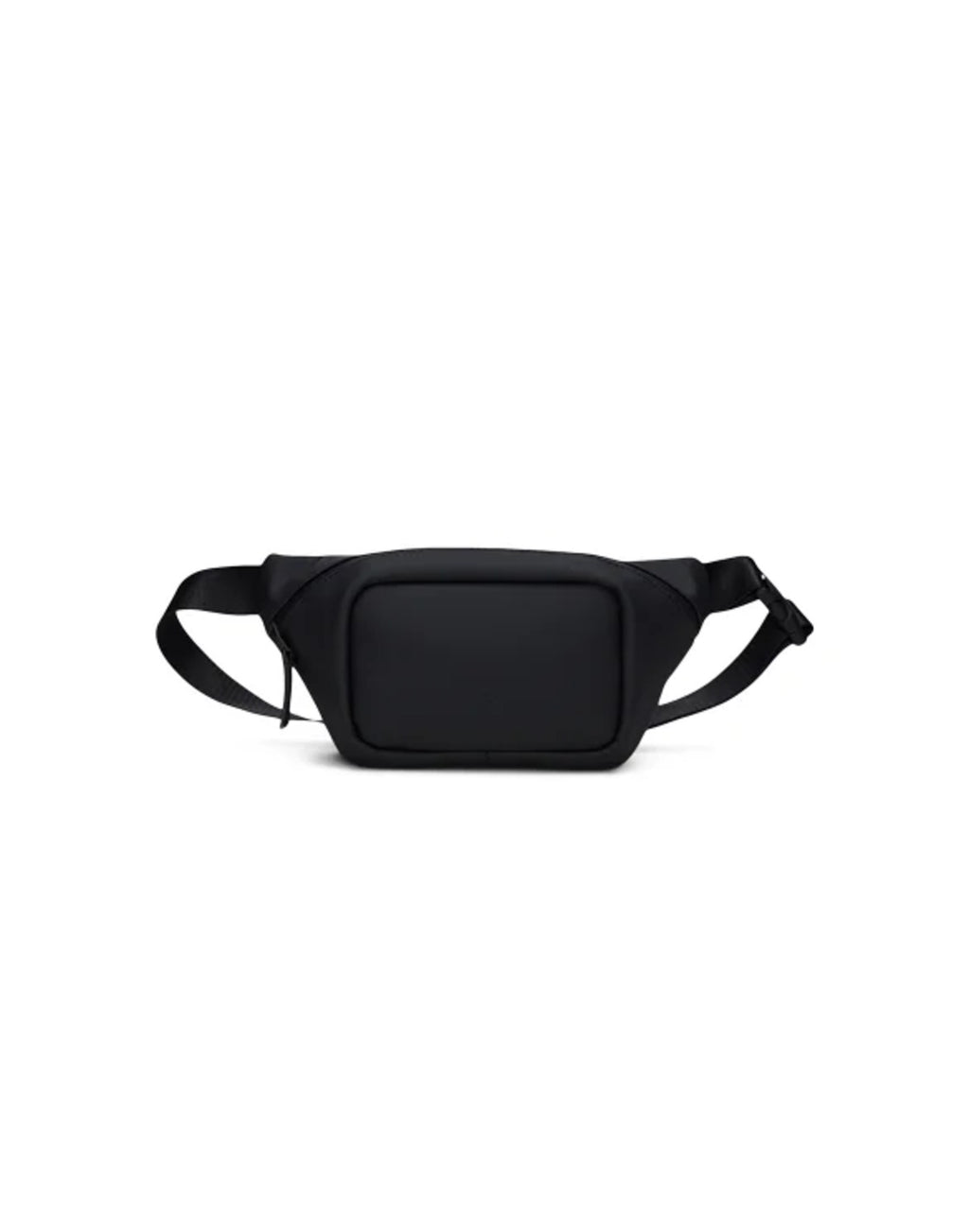 The streamlined and discreet proportions of Bum Bag Mini Black make it an essential for busy days in the city or when traveling. Durable and waterproof, its compact main compartment offers plenty of space to stow personal items securely. It’s fixed to an adjustable webbing strap which can be worn over the shoulder, cross body or as a waist belt, and fastens with a convenient quick-release buckle. Note Rains’ subtle debossed logo. Bum Bag Mini is made from Rains’ signature waterproof PU fabric, engineered for carrying strength, durability, and a smooth feel.