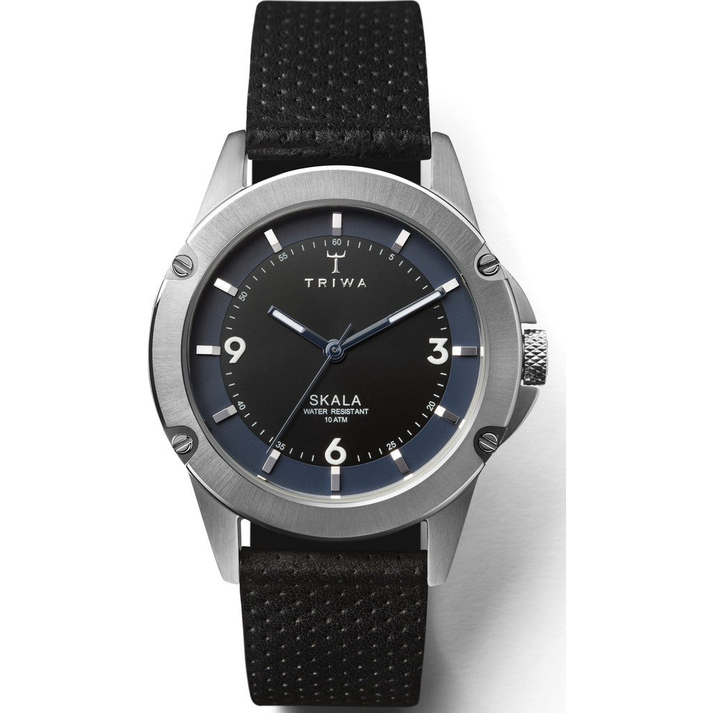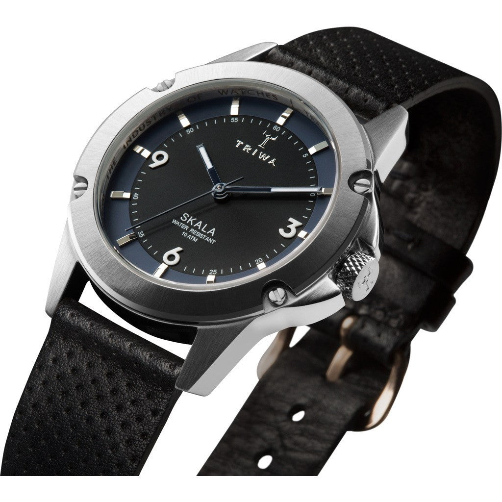 The Raven Skala Watch by Triwa is a classic watch that can be worn with any attire. The silver hour indicators and hands are easy to identify on the contrasting raven dial. The elegant yet practical tan leather band gives the Skala an elegant look. The hour indicators are simply stated with only the 3, 6, and 9 o'clock hours indicated on the face.
