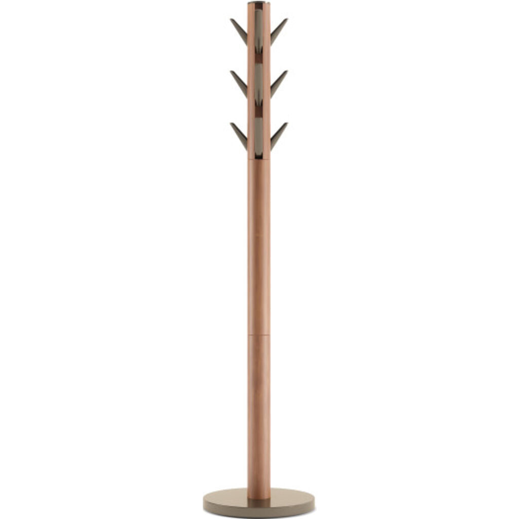 This wooden coat rack stands tall and sleek with nine flip-down hooks, offering ample storage with the ability to tuck away when not in use. Made of wood, Flapper has a tree-like aesthetic, while being entirely modern. Available in a variety of modern finishes, Flapper is sleek in design while keeping ample utility.