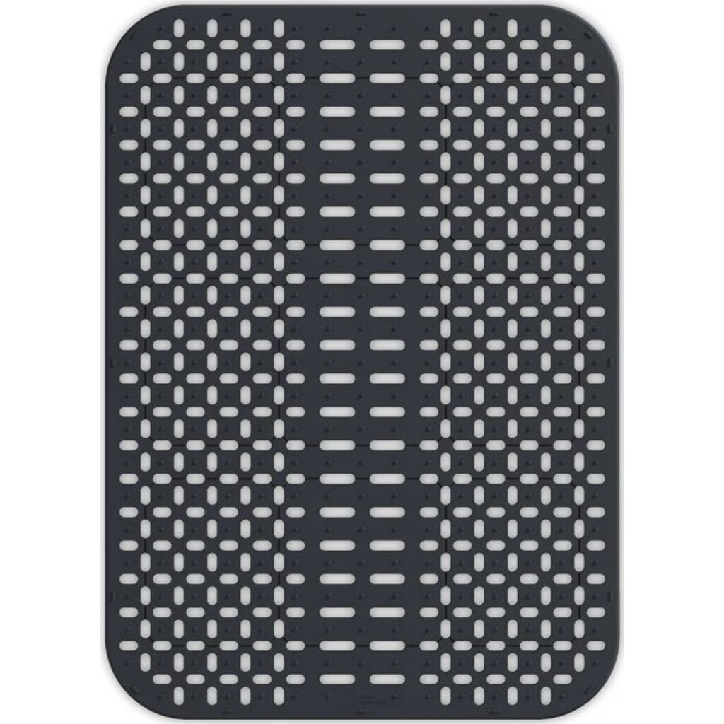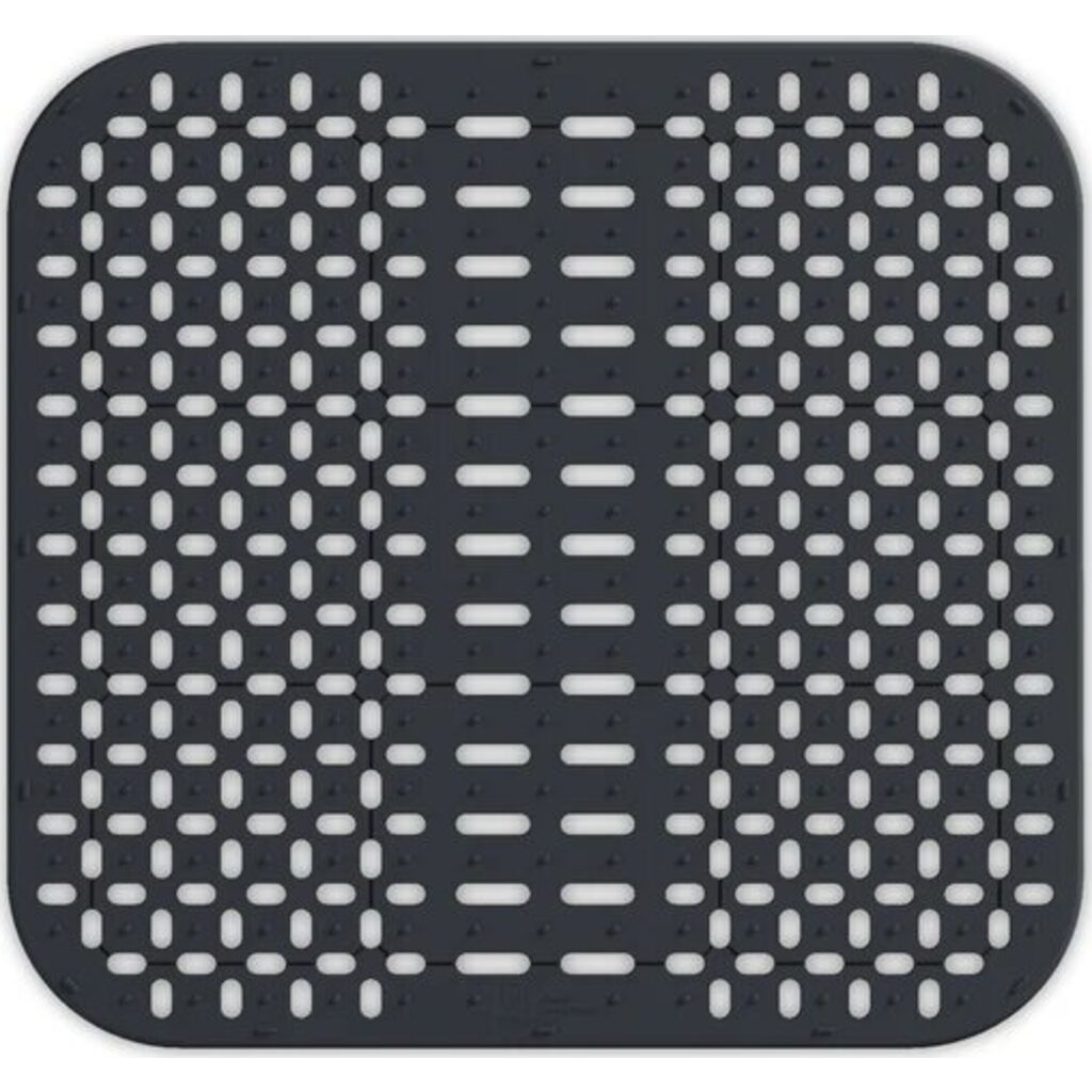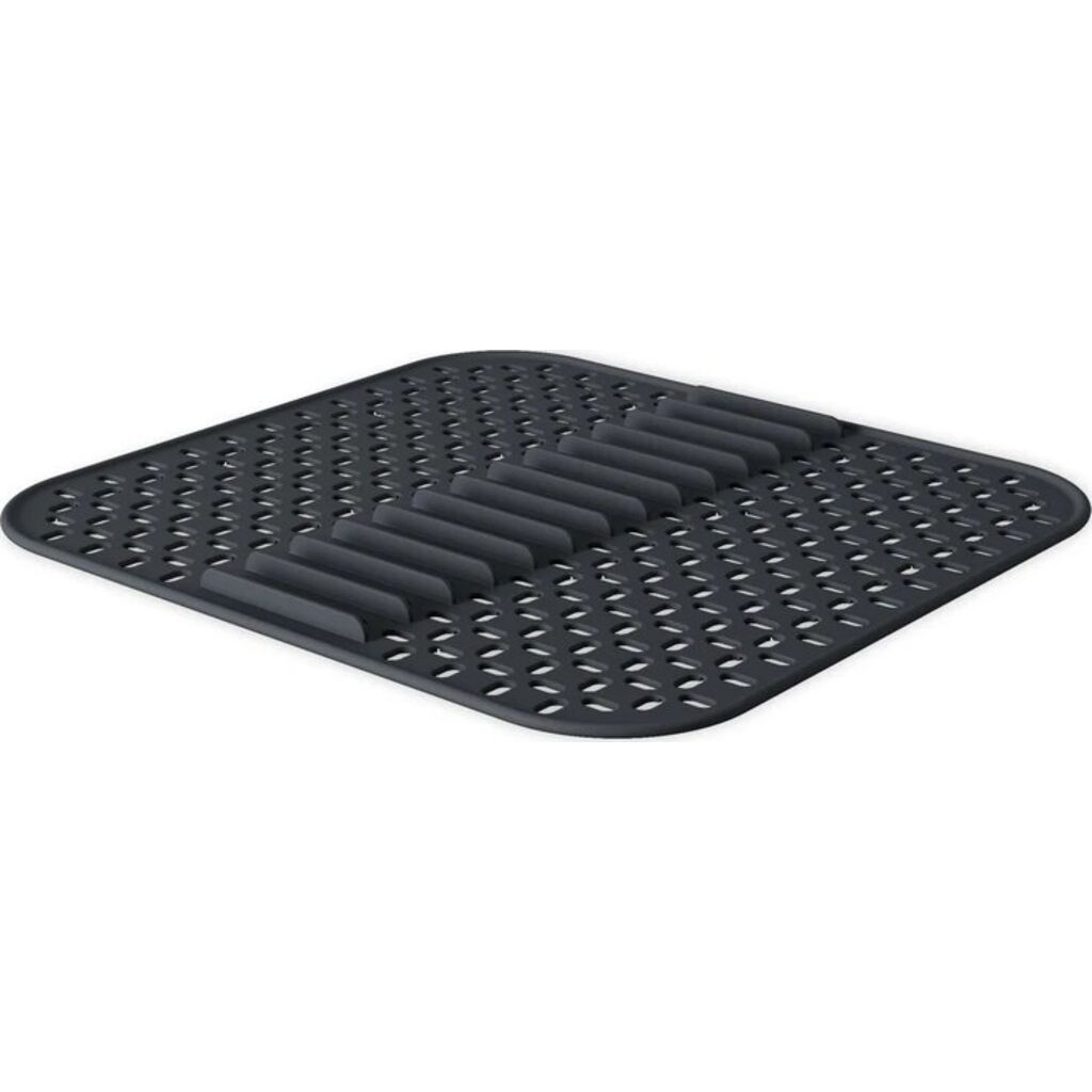 Sling sink mat and plate holder is a multifunctional sink mat that protects your sink and dishes during pre-rinsing, washing or drying. Unlike traditional flat sink mats, Sling sink mat features raised ridges that help keep your dishes elevated and upright, allowing for airflow and easy drainage. This versatile sink mat can be used for plates, cups, lids, knives, cutting boards, and more, helping to organize your dishes and maximize your sink space. Optional cut lines are featured on the bottom of the mat to accommodate for your sink drain.
