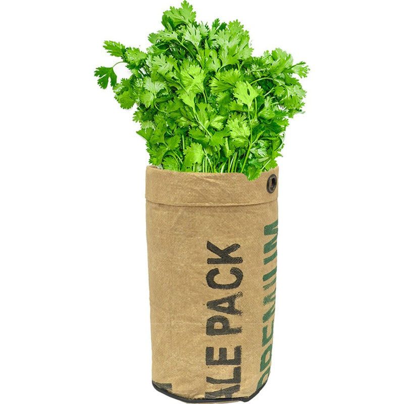 Urban Agriculture Co. creates easy to use organic grow kits for a variety of flowers, herbs and vegetables. The Cilantro grow kit includes one bag of organic soil, one pack of organic seeds, and a grow container made of 100% recycled tea bags.