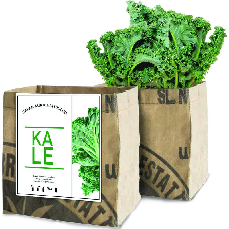 Urban Agriculture Co. creates easy to use organic grow kits for a variety of flowers, herbs and vegetables. The Kale grow kit includes one bag of organic soil, one pack of organic seeds, and a grow container made of 100% recycled tea bags.