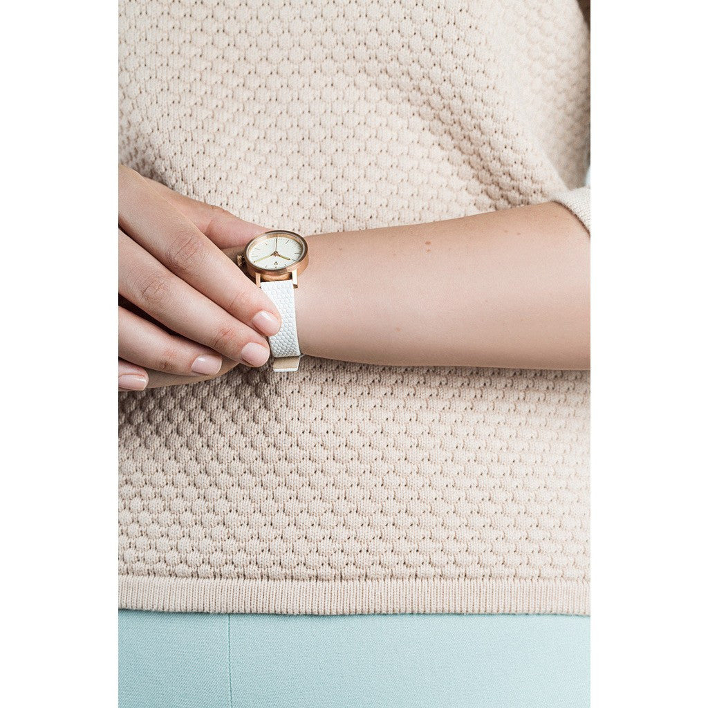 Sleek and simple, this VOID Copper Round Petite White Watch is a timeless accessory perfect for demonstrating your sophisticated style. Featuring an elegant white lizard band pattern and a minimalistic face with diminutive copper hands accents, this gorgeous watch is the ideal fit for the woman who appreciates classic beauty and modern design.