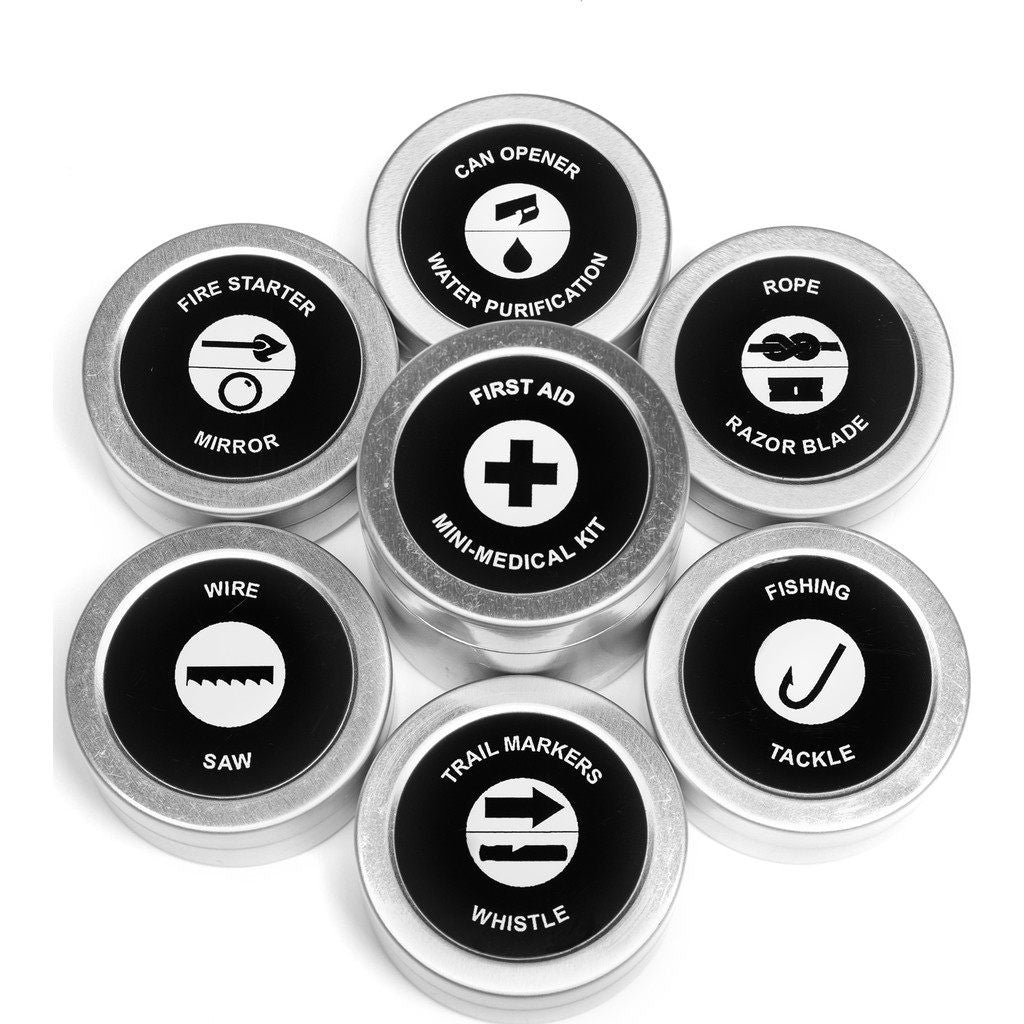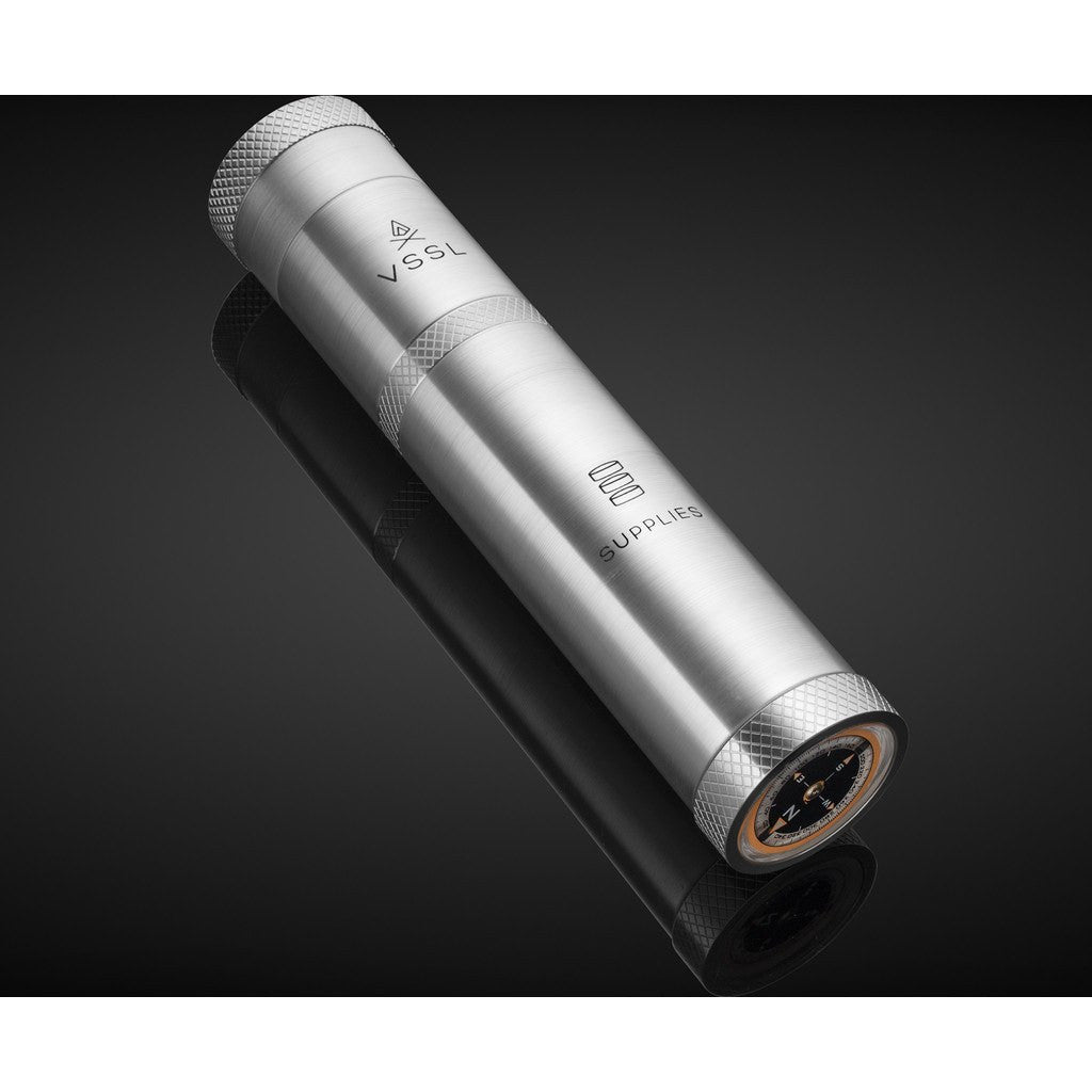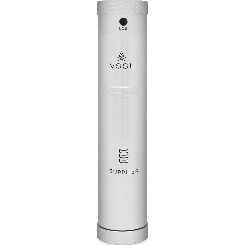 VSSL makes sure you're prepared for any adventure with the Survival Supplies Kit. Constructed with seamless extruded military specification anodized aluminum, this waterproof cylinder holds a 4 hour candle, a razor blade, 6 water purification tablets, wire saw, a whistle, waterproof matches, tinder quik fire starters, fishing gear, a signaling mirror, marine grade rope, reflective trail markers, a can opener, first aid supplies and instructions. Compact and nearly indestructible, this supply kit has you covered.