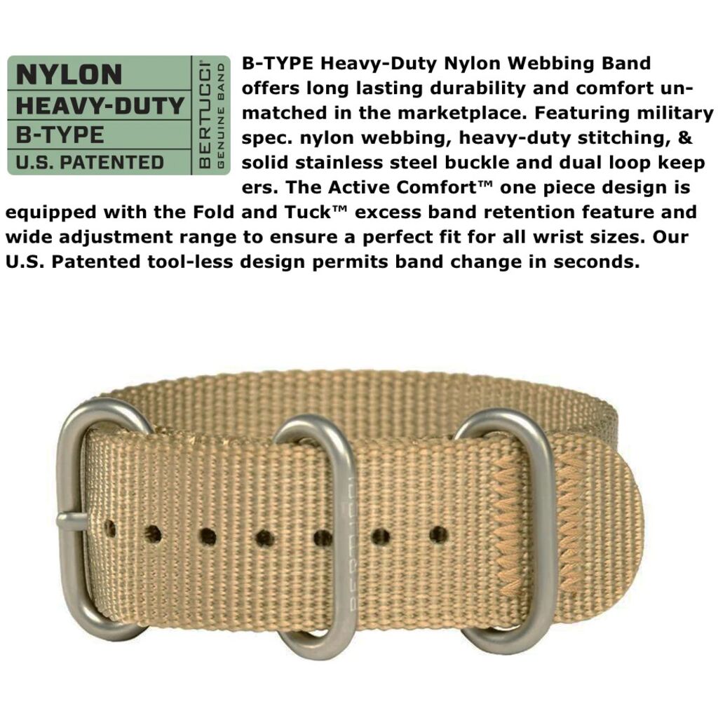 • Band Type Included: #365 Bertucci Khaki B-Type Nylon