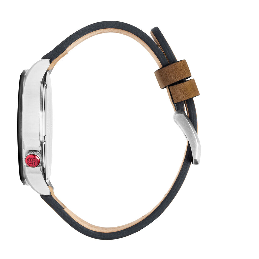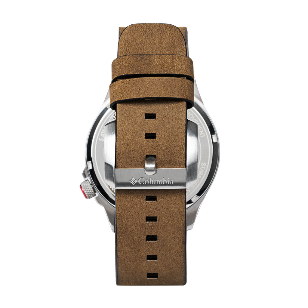 The case’s diameter measures at 42mm and it is made of stainless steel, in order to increase the longevity of the watch. The gold bezel is fixed and it gives the watch with a sophisticated feel. It also features a knurled crown that is situated at the 4 o’clock marks. Knurled crowns are also used on the widely respected Seiko SKX divers.