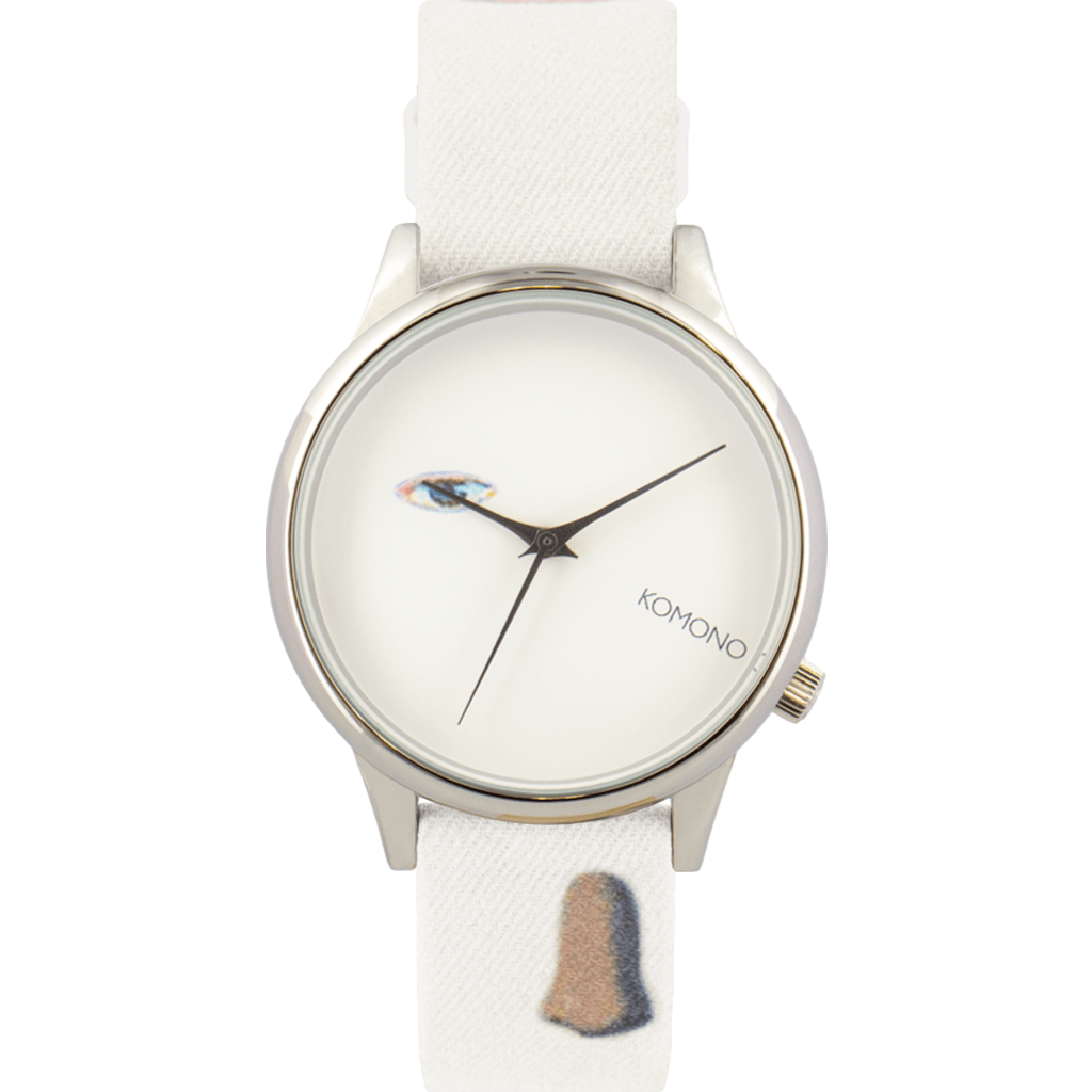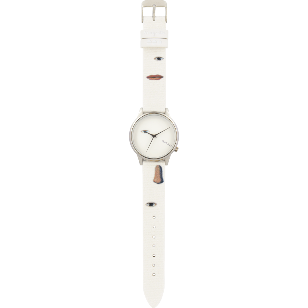 Komono collaborates with the Magritte Estate to craft the Komono x Magritte Collection. René Magritte was a leading artist of 20th century Surrealism. This Estelle Watch pays homage to the Magritte's 1966 painting The King's Museum and features a plain white dial with an eye from the surrealist master's work.
