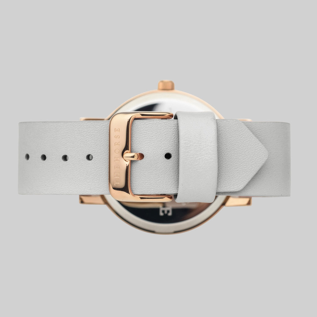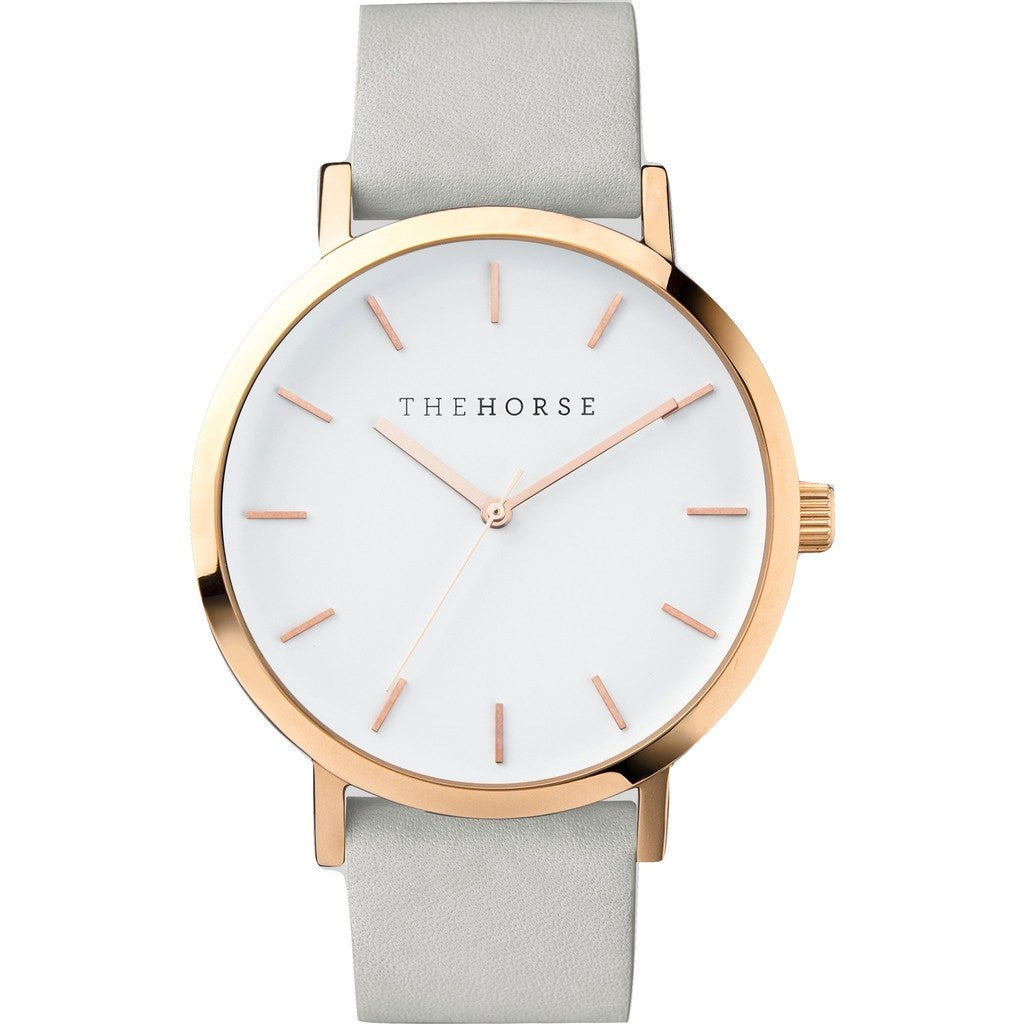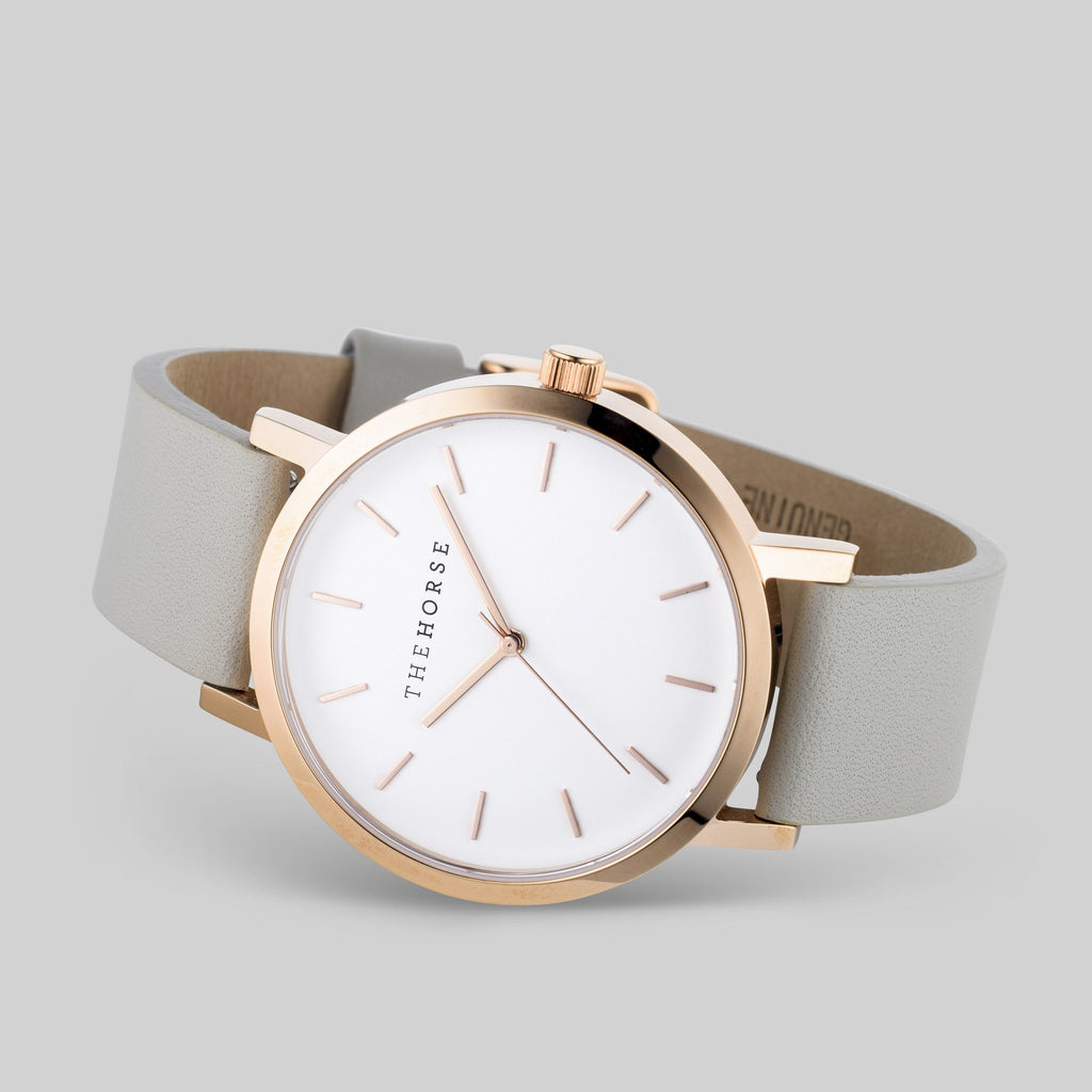 Simplicity at its finest, The Horse brings you their Original collection. This Polished Rose Gold Watch is designed with a white face, minimalist rose gold markers, and is finished with a refined grey leather band for a timeless style.