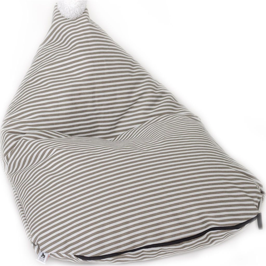 The Reeve Bean Bag Chair cover in slim Grey and White Stripes is simply an easy classic you can't go wrong for a comfy home accent. Wild Design Lab started from a mother's love to create safe, stylish, and functional play decor that will encourage creative play. Fits in any active and sophisticated home for a playful family environment. Your love ones will enjoy the simple and fun bean bag chair in every room!