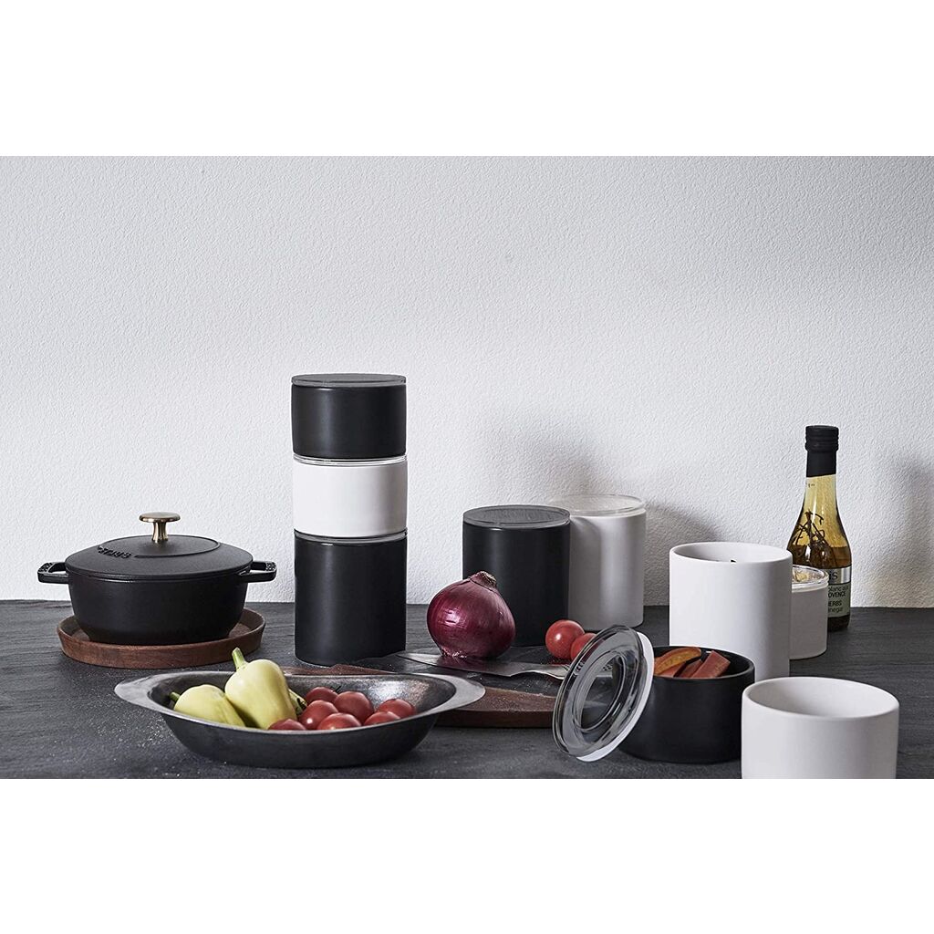 Ceramic, Stackable, Stylish a smart, space-saving solution to meal prepping. Terrific for storing both hot and cold fare. Stock up a week’s worth of yogurt and granola. Store leftover soup or stir-fries. Pack a lunch of fruit or salad. The options keep on piling higher and higher, just like these stackable containers.Comes in two different sizes.