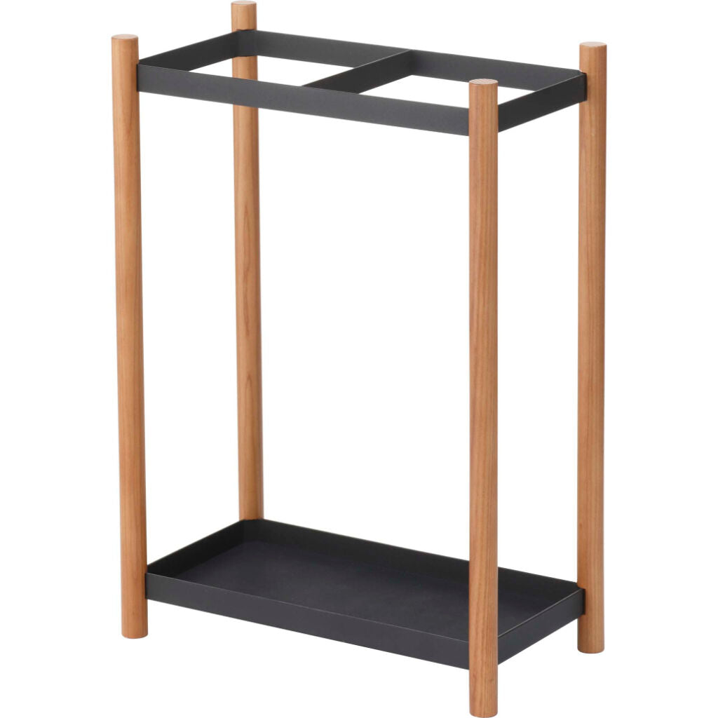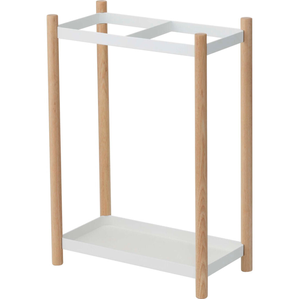 This minimal, wood-accented stand features a split-compartment top to help keep umbrellas upright.