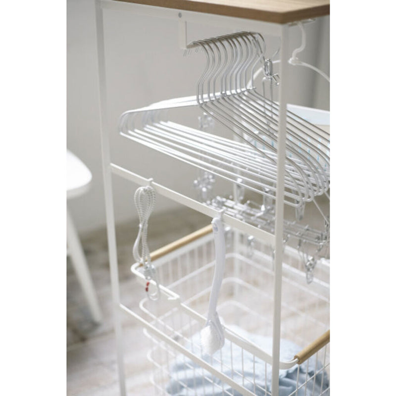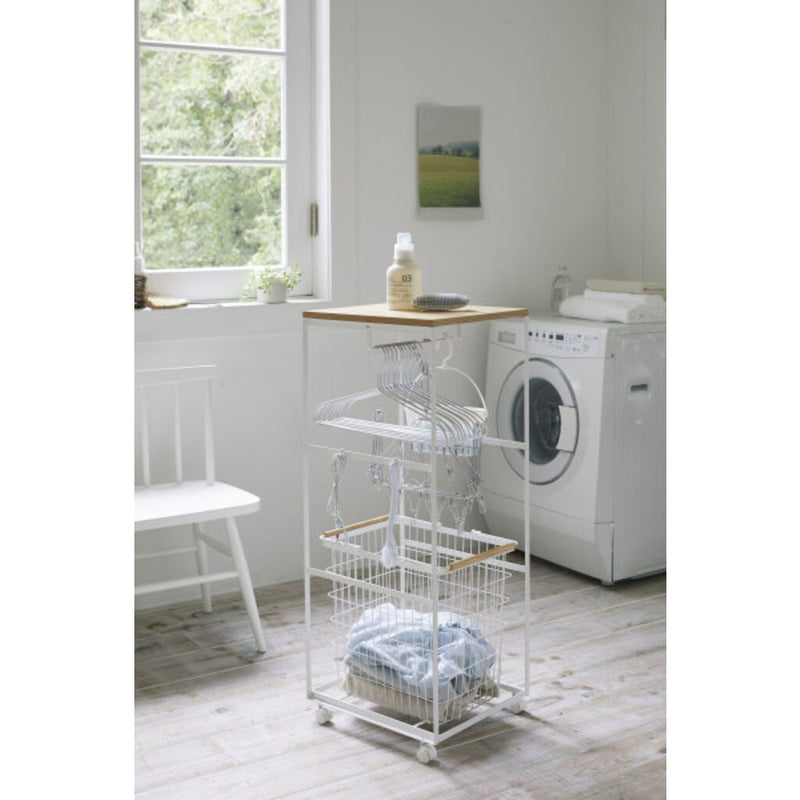 A mobile laundry station anywhere you want it. Pop your warm towels out of the dryer and into one of our Tosca baskets, which nestle neatly in the bottom rack of the Rolling Tabletop Laundry Cart. The best part is the tabletop, which serves as a nifty folding surface wherever you roll your cart! The cart also features a rack for drying shirts and other hangables. Convenience and comfort!