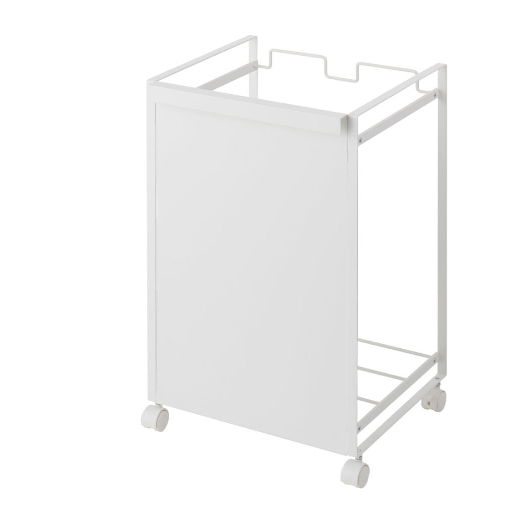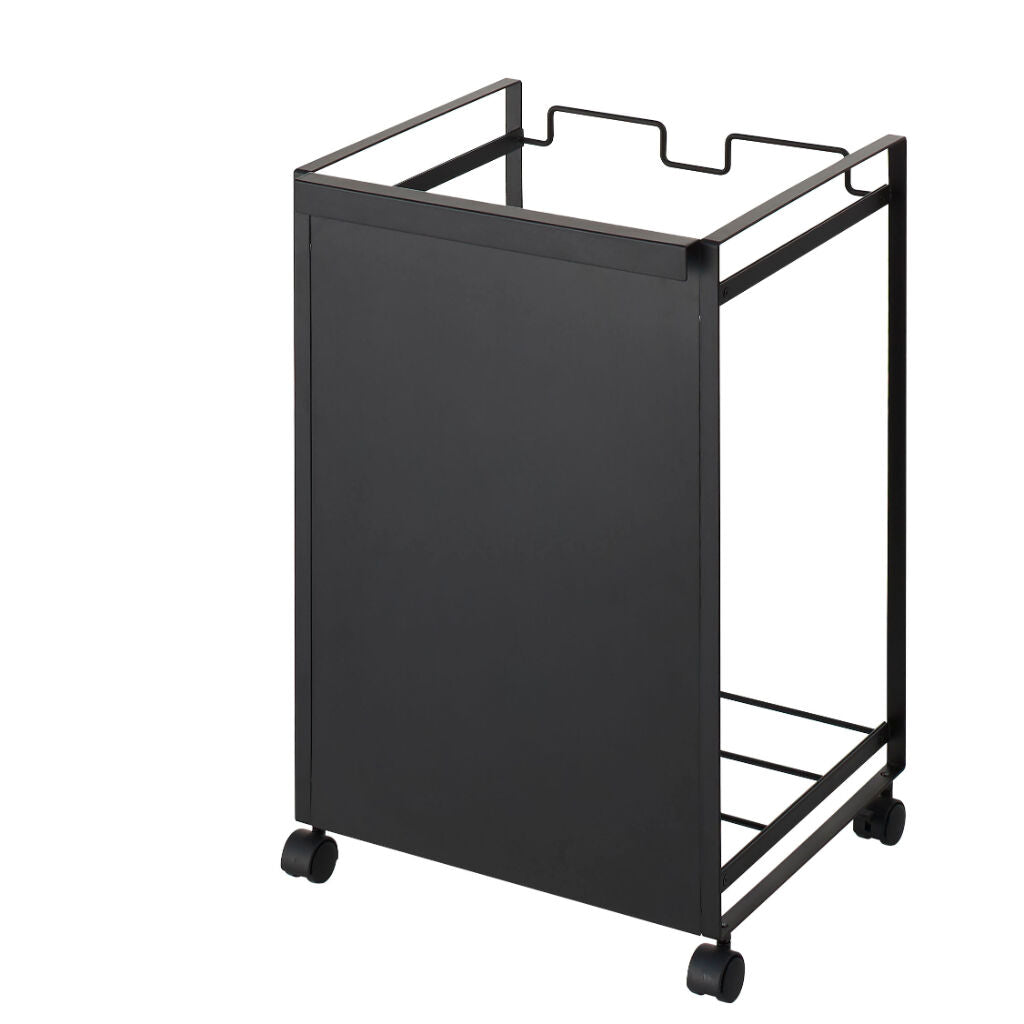 Forego an enormous garbage can and instead opt for this simple, rolling solution that will allow you to make use of your plastic bags. Face the solid side outward to mask the garbage behind. Simply wrap two garbage bags on the upper hooks and easily begin sorting your trash. Paper trash, plastic recycling, whatever the situation calls for.