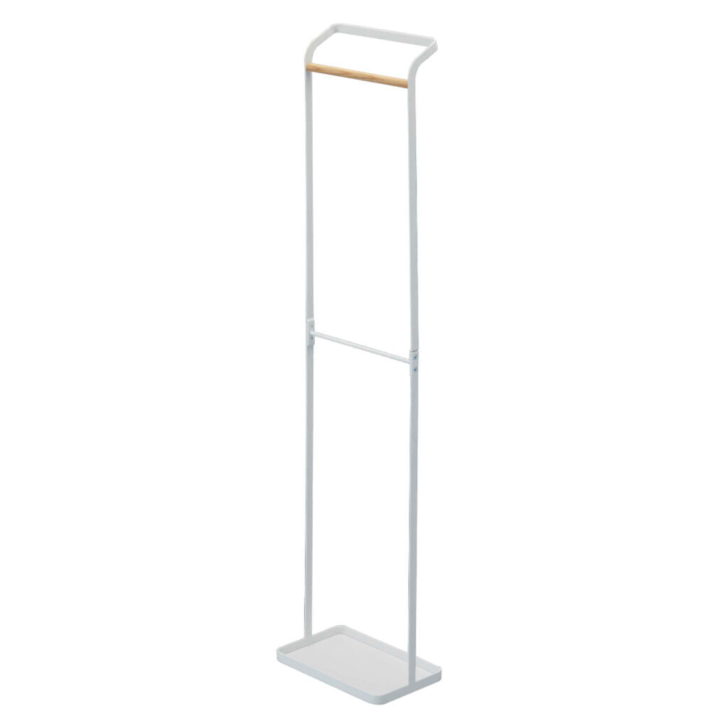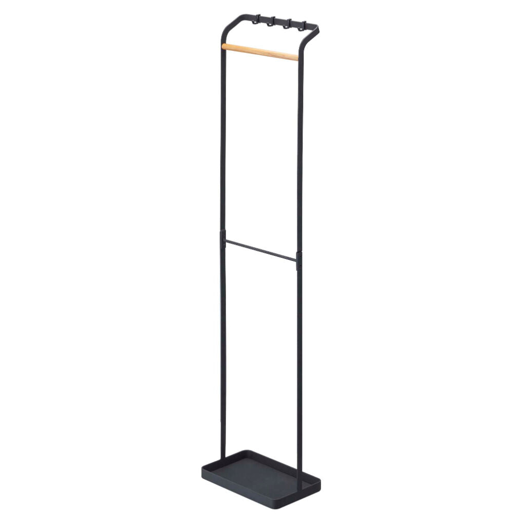 This slim-profile hanging umbrella stand keeps your umbrellas stored neatly and stylishly. The wooden bar supports hook-handled umbrellas while smaller umbrellas can hang using the clips provided.