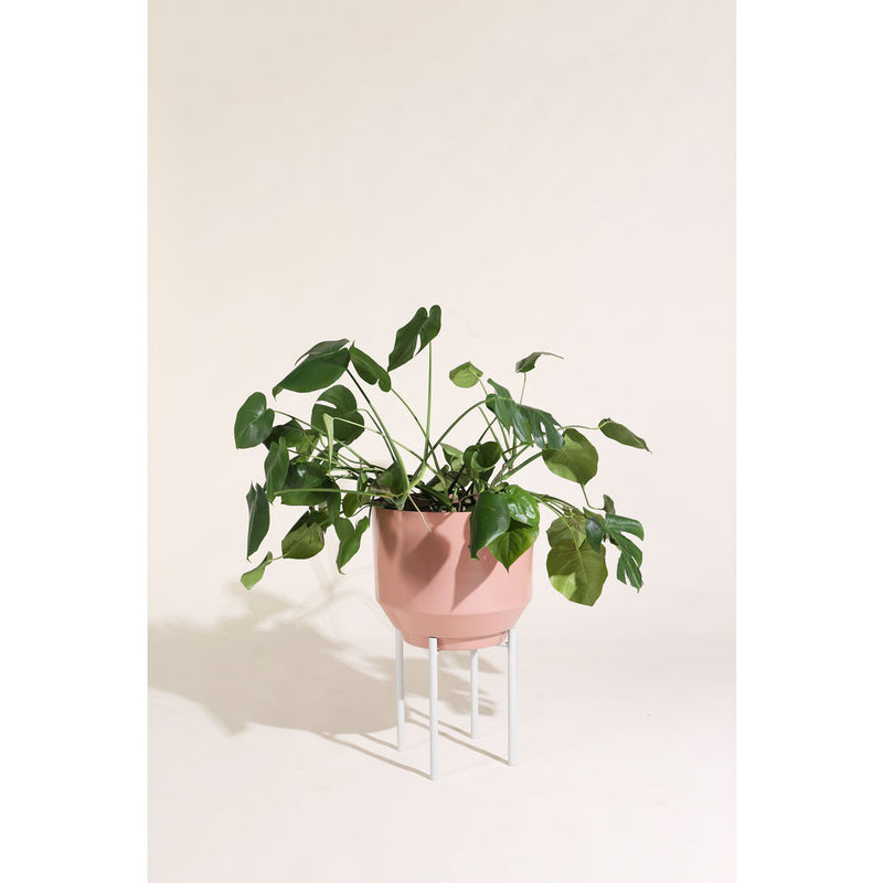 This lovely Peach Planter from Yield Design is a self watering planter, perfect for any room in your home! Ideal for anyone that loves plants and has a hard time keeping them alive! These planters are made from a single sheet of aluminum that has been hand spun and powder coated. There is a 1.25" reservoir at the base of the planter that is separate from the main body. Keeping the standing water separate from the soil which prevents root rot. The water then evaporates back into the soil to keep it from drying out. You can choose from the 8" or the 16" pot. Pick the perfect plant stand for your space or choose no stand at all!