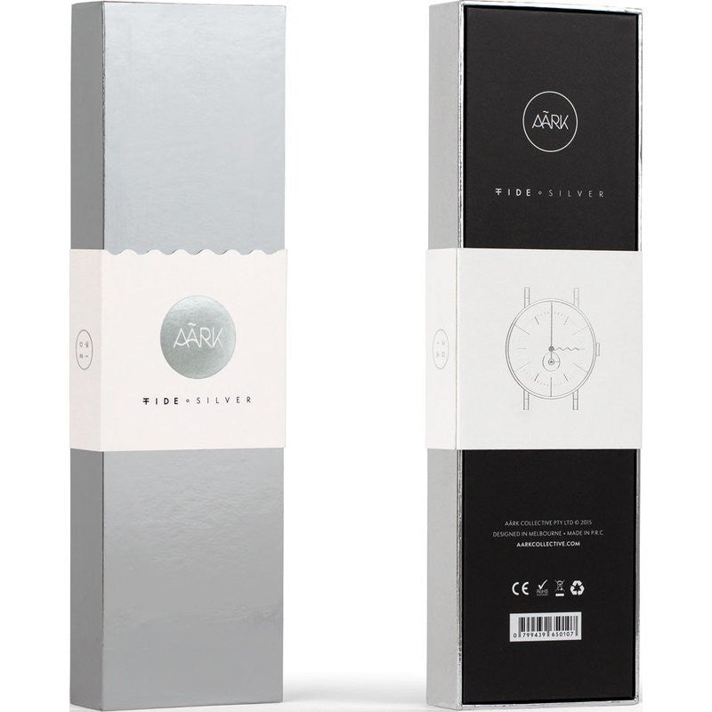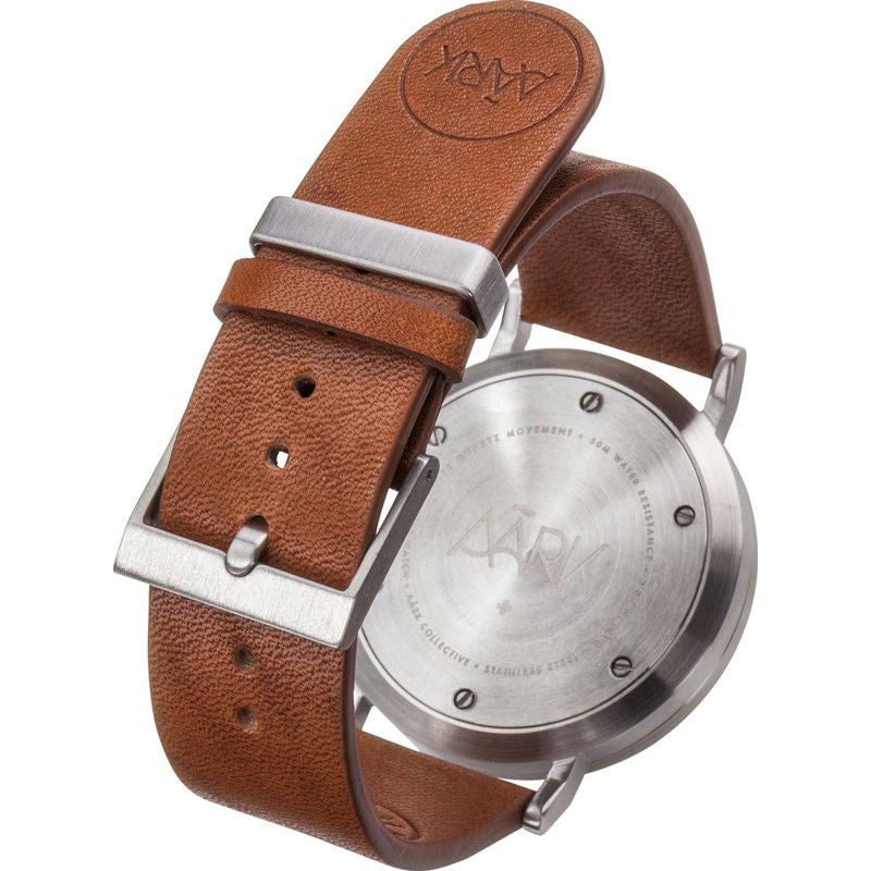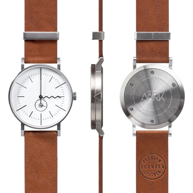 The AARK Collective Tide Watch in Silver is perfect for those who like to mix a little business with pleasure. With a sapphire-coated mineral glass driven by a Swiss Quartz movement, a brushed stainless steel outer case, raised indexes, subtle tilde detail on the hour hand, and US tannery Horween leather band, The Tide is surely for those who love to make waves. This classic watch is perfect for almost any occasion.