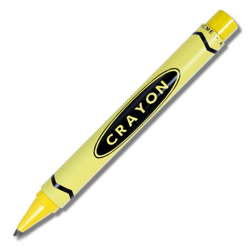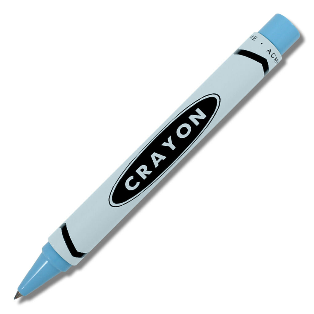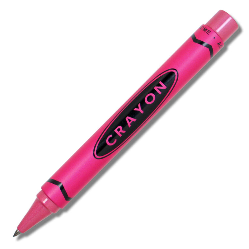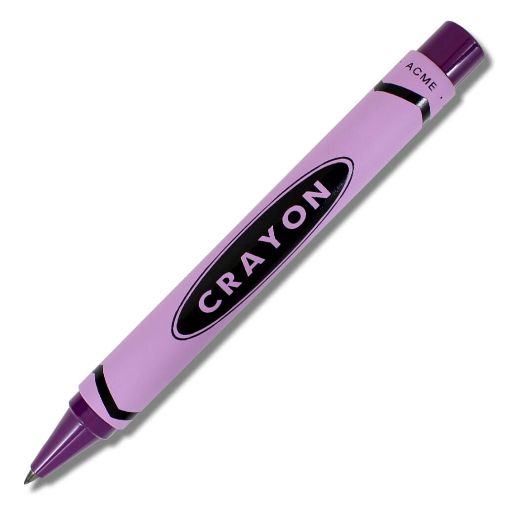 The "Crayon" retractable roller ball, designed by Adrian Olabuenaga, comes from ACME Studio's Collezione Materiali. The design represents the classic "Crayon". It comes in blue, red, green, orange, yellow, white, pink, light blue, and chocolate brown. The pen comes with one black roller ball refill. It comes packaged in an ACME pullout drawer box.