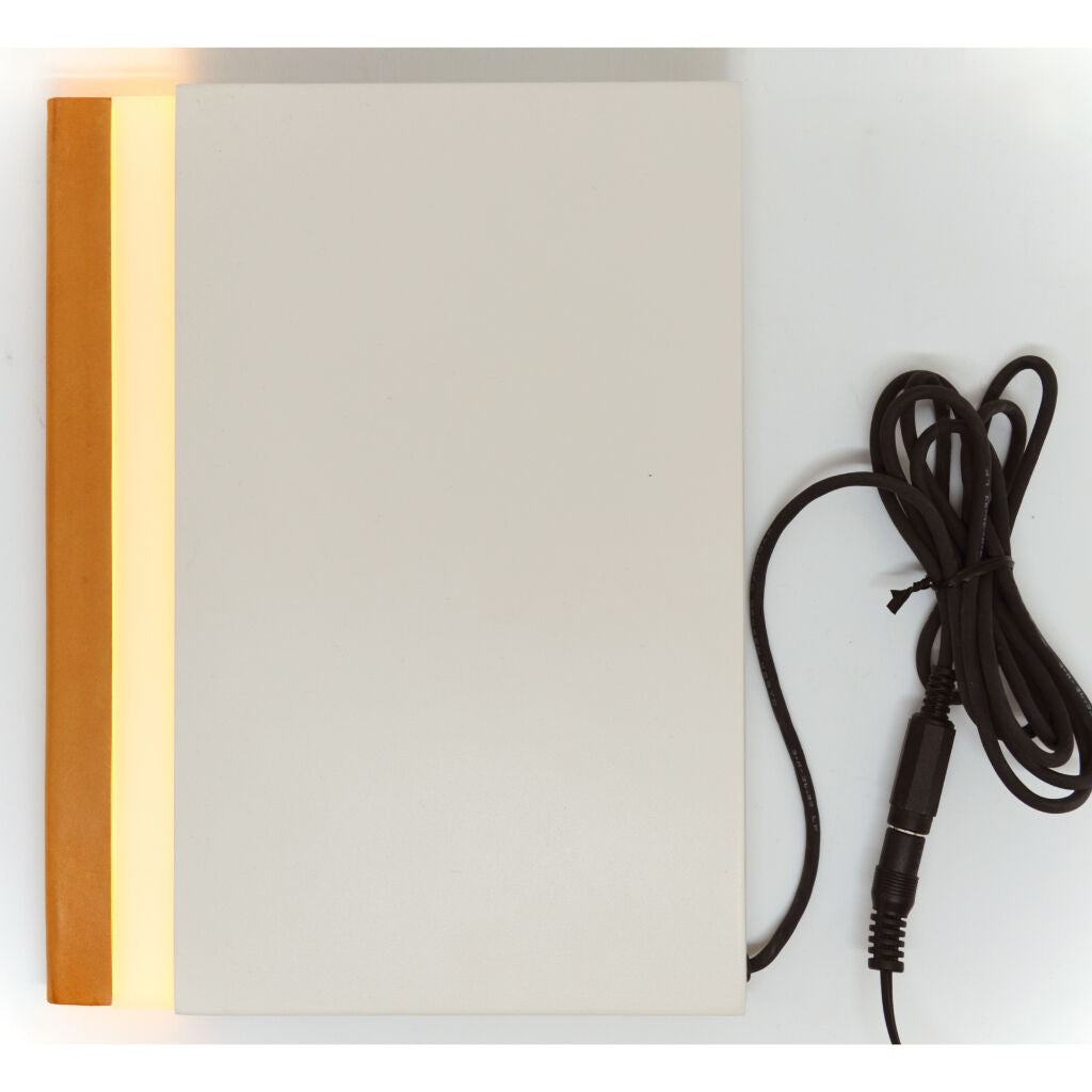 Designed to blend into the bookshelf as an elegant leather-spined volume in a matte steel case, Nightbook works by illuminating when you pull it out partially. No more squinting to find faded book titles in the dark, rather fill the space with a warm glow. Or use this as a bedside light. Long-lasting LED made with fine materials, with a discreet wire and adaptor plug.