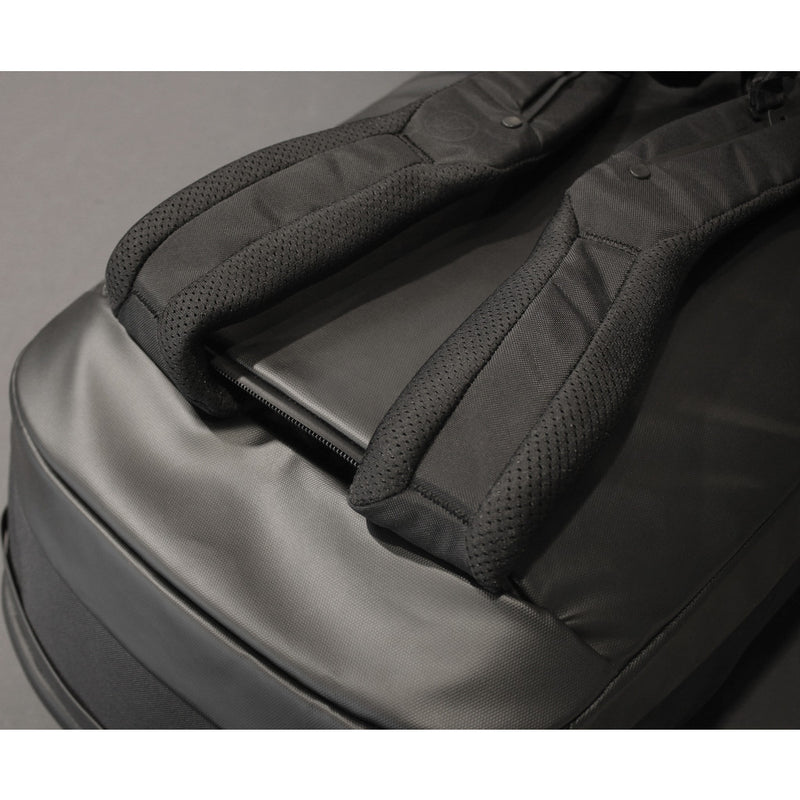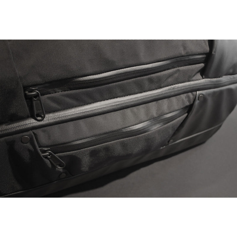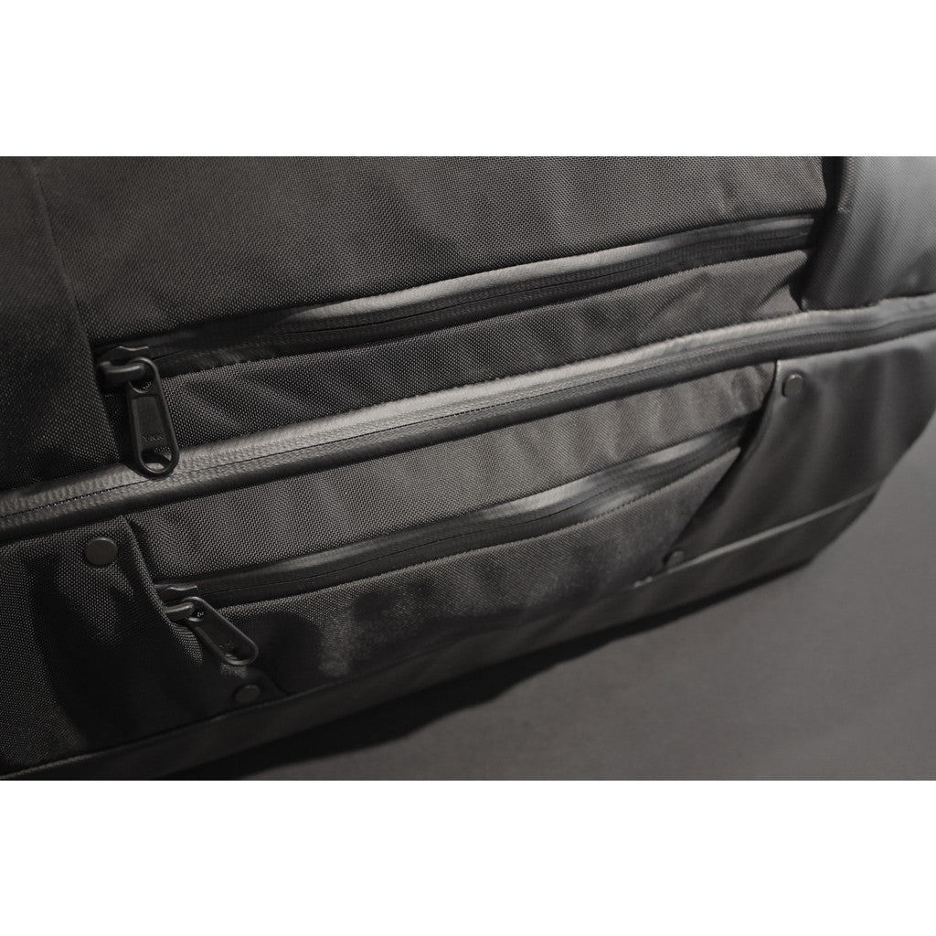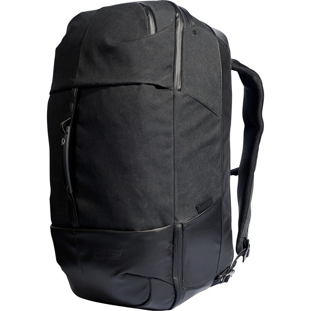 Alchemy Equipment designed this practical AEL008 Hybrid Black Wax Backpack to comply with IATA guidelines for 'carry on' luggage. You can carry the AEL008 Hybrid Backpack as a duffel bag, shoulder bag or backpack. Brilliant. The YKK AquaGuard zip allows the AEL008 to open fully, like a suitcase, for easy access to the main section, and to the separate water-resistant compartment. You can board a plane easily with the quick access document organizer pocket, and enjoy light reading during your trip with an external magazine pocket. Stow your 15" laptop in the upper section's padded sleeve, which would impress James Bond with its nifty ejection system.'Seat belt' nylon webbing in the carry straps will never let you down.