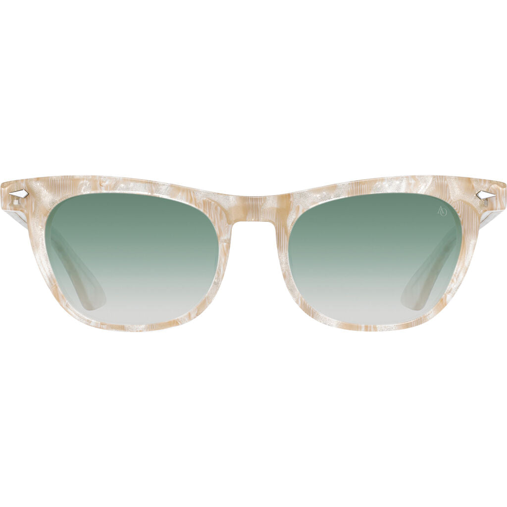 The Lucinda revives the Cosmetan Collection from the 1950s and 60s. Its soft cateye shape exudes old-school glamour, blending a strong shape with feminine patterns. The original style broke ground by featuring laminated fabric and offering colors and patterns previously unavailable in eyewear. For today's frame, we've worked with the finest global acetate producers to create patterns that evoke the feeling of fabric for a style that feels like a true vintage find.