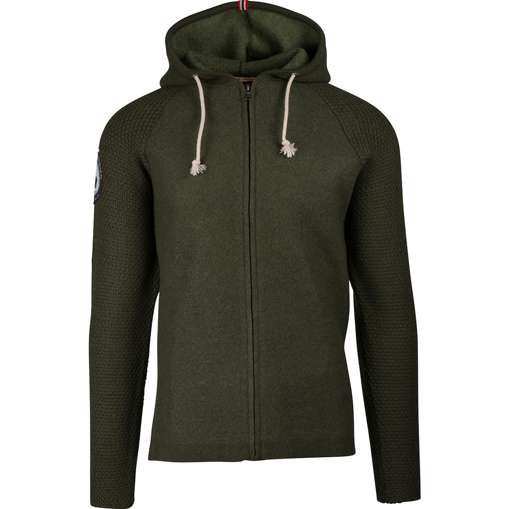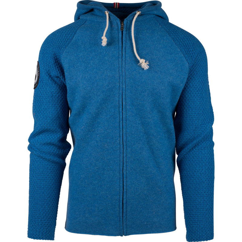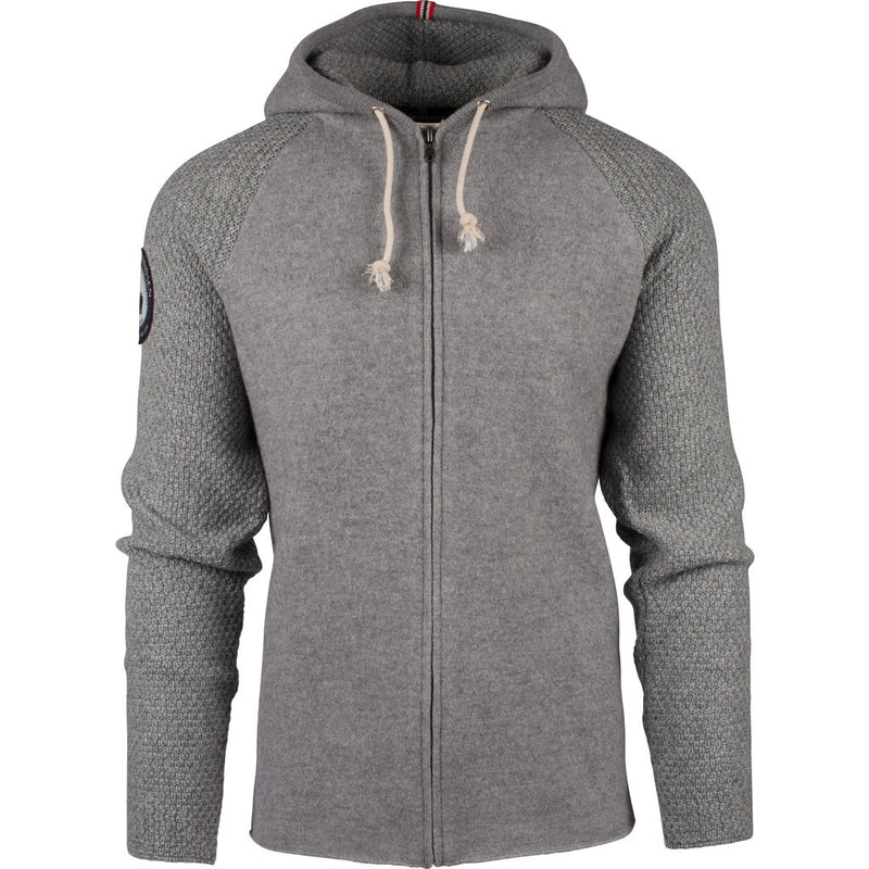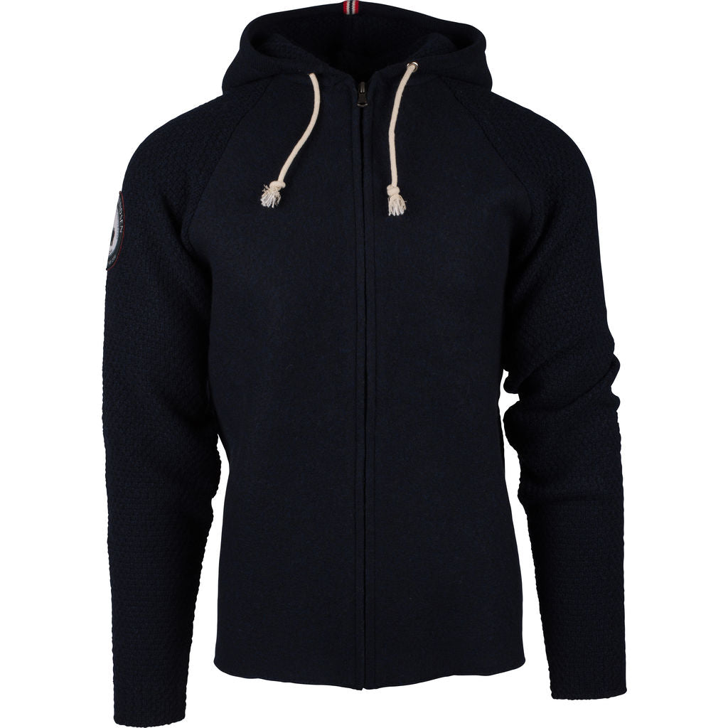 Stay cozy year round with the Amundsen Sports Men's Boiled Hoodie Jacket, made from 100% Merino Wool. Crafted using a technique that has been used to make clothing from mountain people and seafarers. They knit the sweater really large and then boil it down to the correct size to give you warmth and water and wind resistance. This design is finished with a Spirit of Amundsen expedition patch on the upper sleeve.