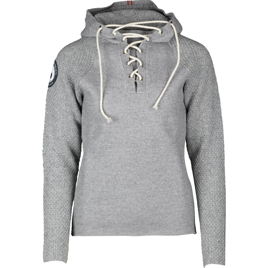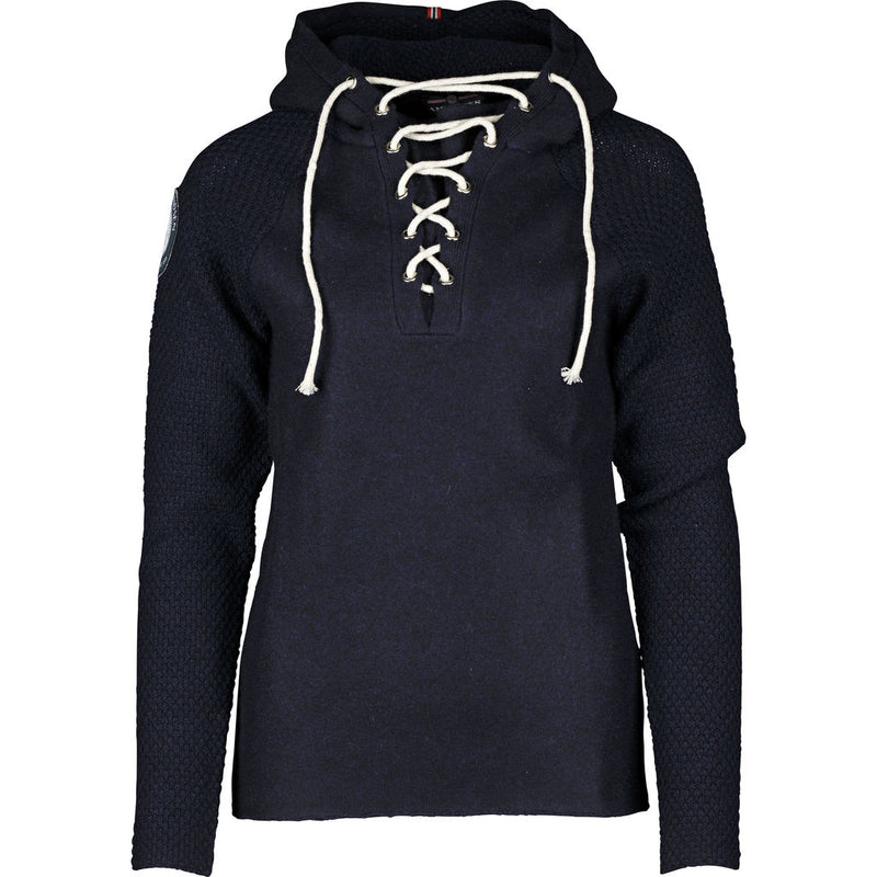 The Amundsen Sports Men's Boiled Laced Hoodie is made from 100% Merino Wool. Crafted using a technique that has been used to make clothing from mountain people and seafarers. They knit the sweater really large and then boil it down to the correct size to give you warmth and water and wind resistance. This design is finished with a Spirit of Amundsen expedition patch on the upper sleeve.