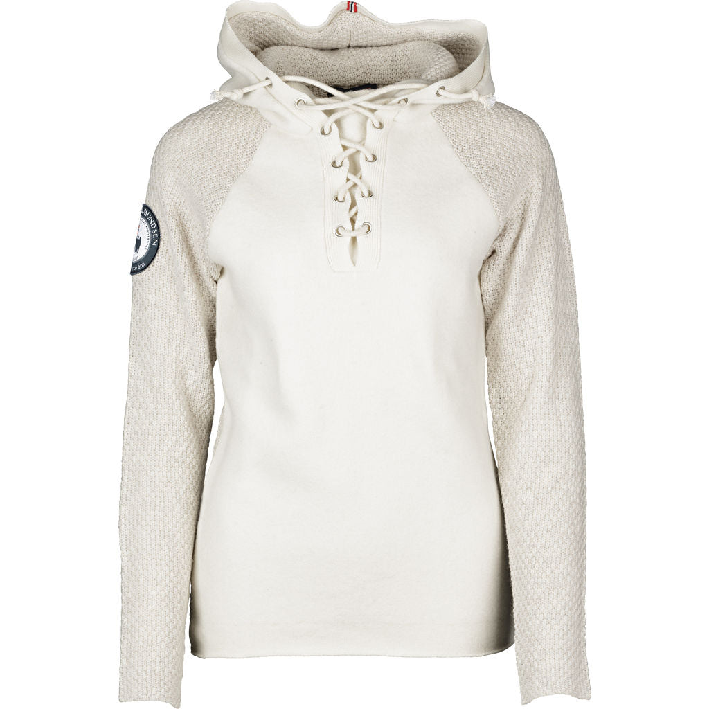 The Amundsen Sports Men's Boiled Laced Hoodie is made from 100% Merino Wool. Crafted using a technique that has been used to make clothing from mountain people and seafarers. They knit the sweater really large and then boil it down to the correct size to give you warmth and water and wind resistance. This design is finished with a Spirit of Amundsen expedition patch on the upper sleeve.