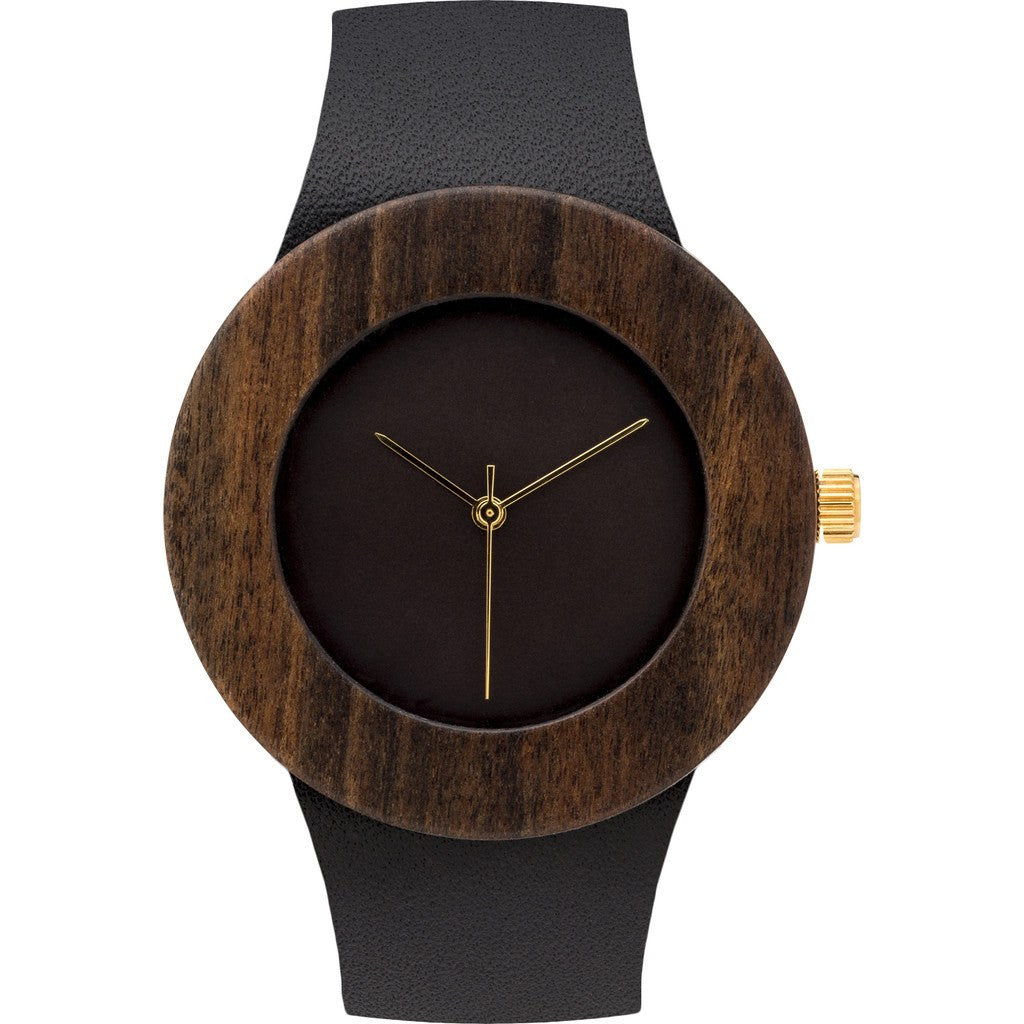 The Analog Carpenter Watch was designed to be sleek and subtle in form. The Leather & Blackwood Watch will truly unify you with nature featuring minimal branding and all natural materials, like you carved it yourself. The delicate watch hands glide along a truly one-of-a kind natural watch face without markings. The soft leather strap and a solid Blackwood body, with shades that vary from a chocolate brown to a dark black, give this timepiece a beautiful and earth friendly appeal. The Analog Leather & Blackwood is a sophisticated, eco-conscious timepiece that is over 80% biodegradable.