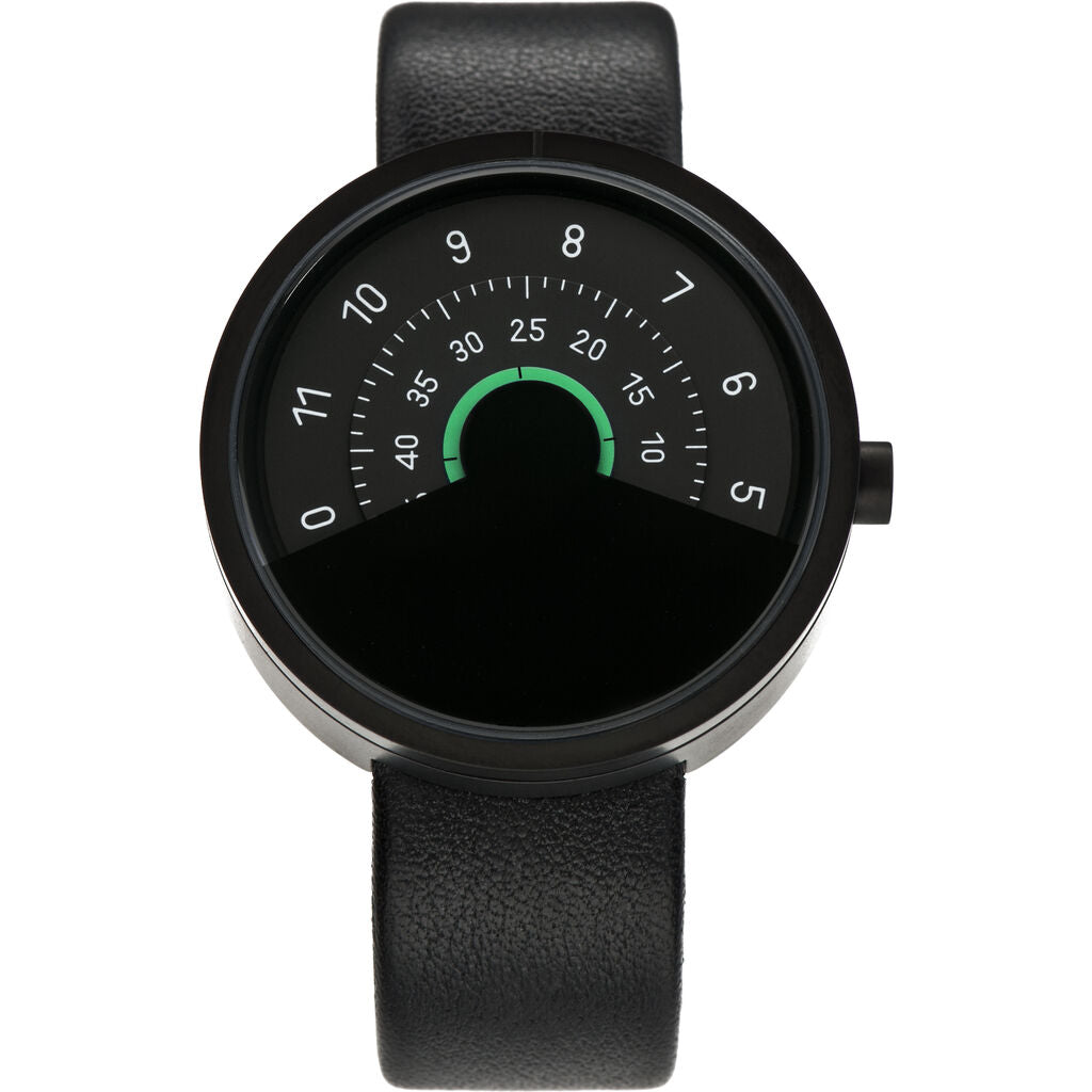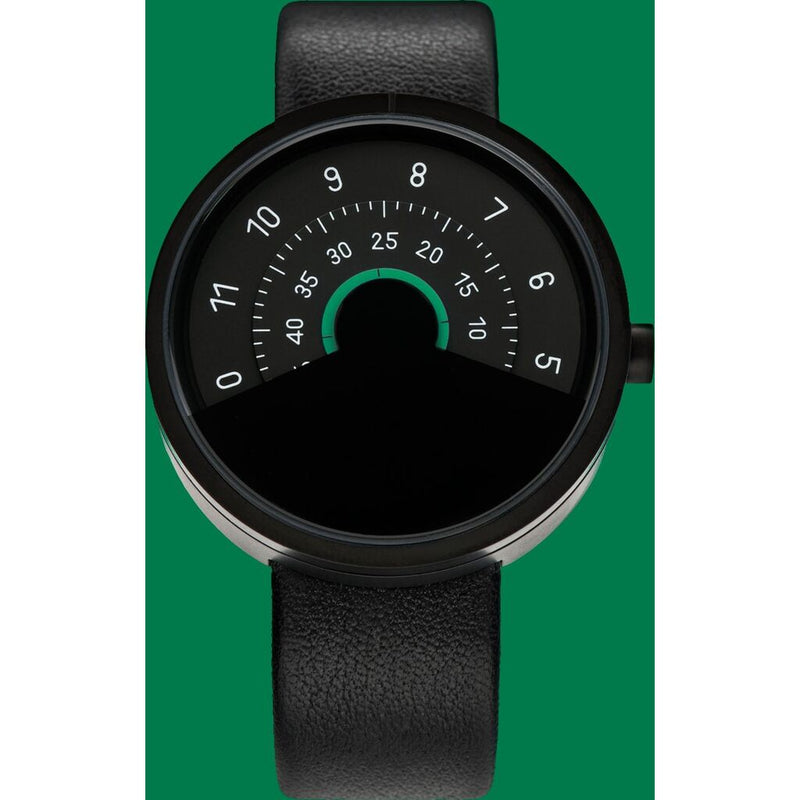 Experience the perfect blend of innovation and elegance with the Anicorn Series 000 Watch in Green. This extraordinary timepiece boasts a unique concentric disc system, replacing traditional hands while preserving legibility with the Swiss font Numeral by Dinamos under an anti-reflective sapphire crystal. Powered by an eco-friendly Miyota 8215 automatic movement, it requires no batteries and ensures precision with a vibration frequency of 21,600 per hour. Its durable 316L stainless steel case, black PVD coating, and interchangeable black genuine leather strap with a stainless steel buckle complete the picture of sophistication. Dive into style with 50 meters (5ATM) water resistance.