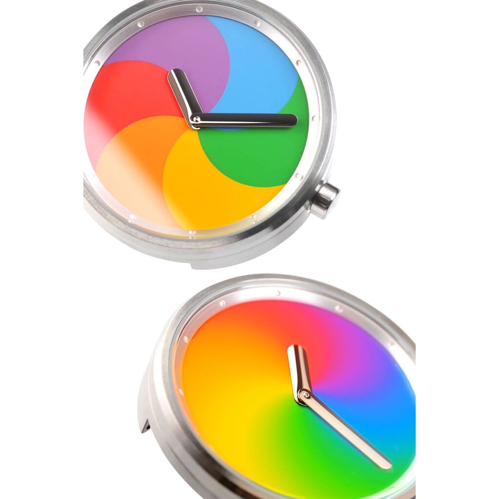 Iconic Beach Ball Inspiration: This watch is inspired by the iconic spinning beach ball symbol, making it a unique and eye-catching accessory that captures the essence of anticipation and transition.