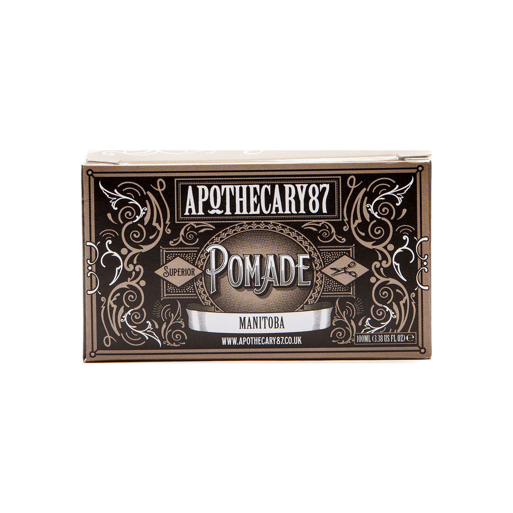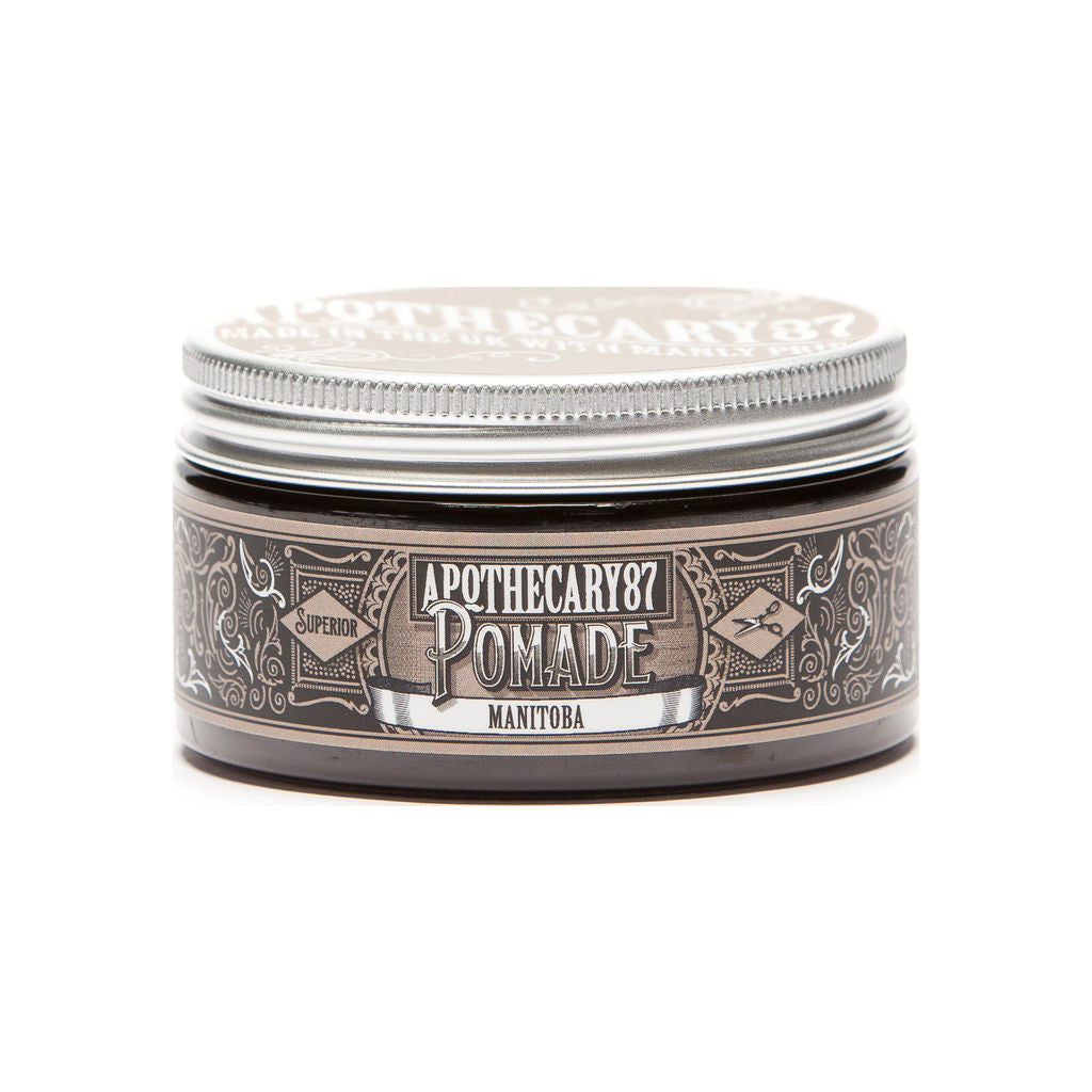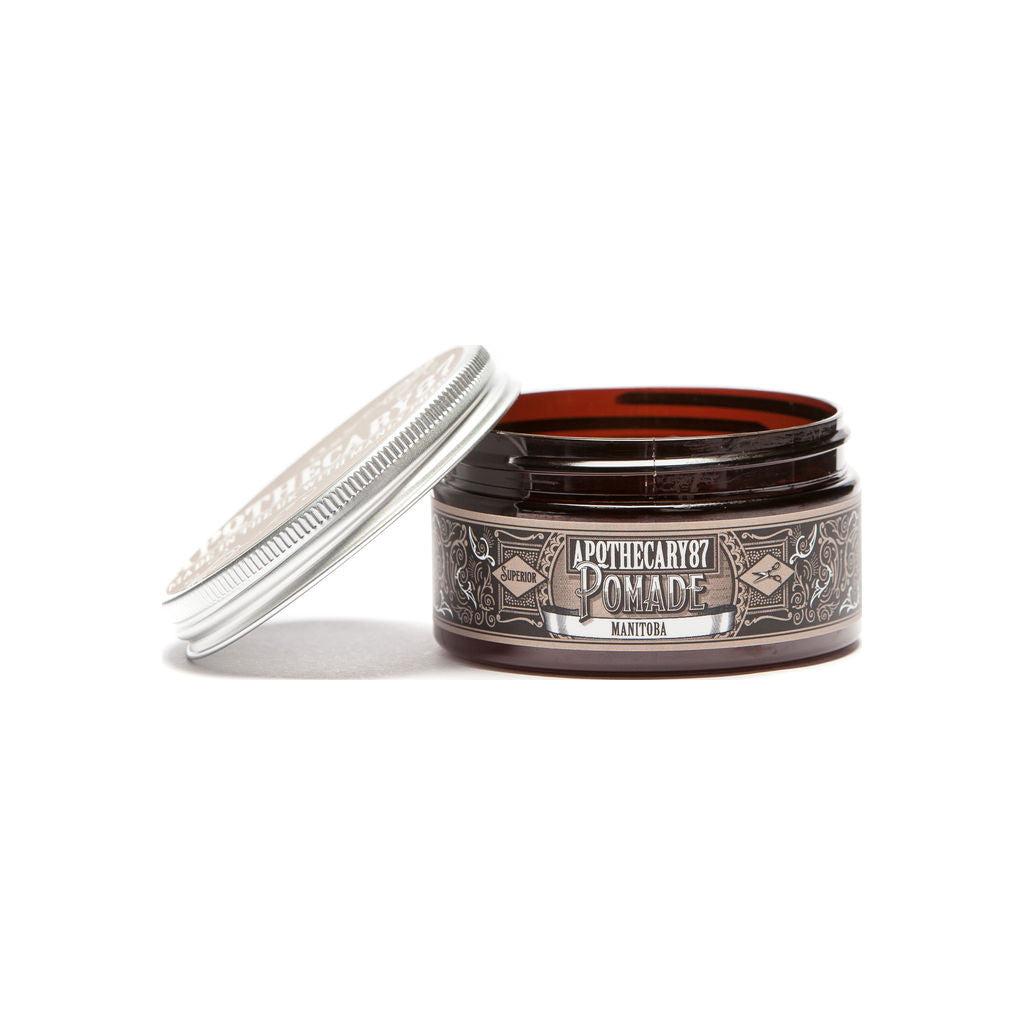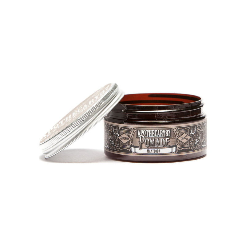 The MANitoba Pomade from Apothecary 87 is designed to have a strong, workable hold and the enticing, sweet scent of maple. This pomade is water-based; so all you have to do to remove it is rinse out your hair. Which means you'll spend less time washing your hair and more time going about your day of looking, smelling, and being manly. The medium to high sheen of this pomade gives your hair a sleek, groomed look with the perfect amount of shine! Apothecary 87's signature formula can tame even the wildest, most stubborn hair and whip it into shape.