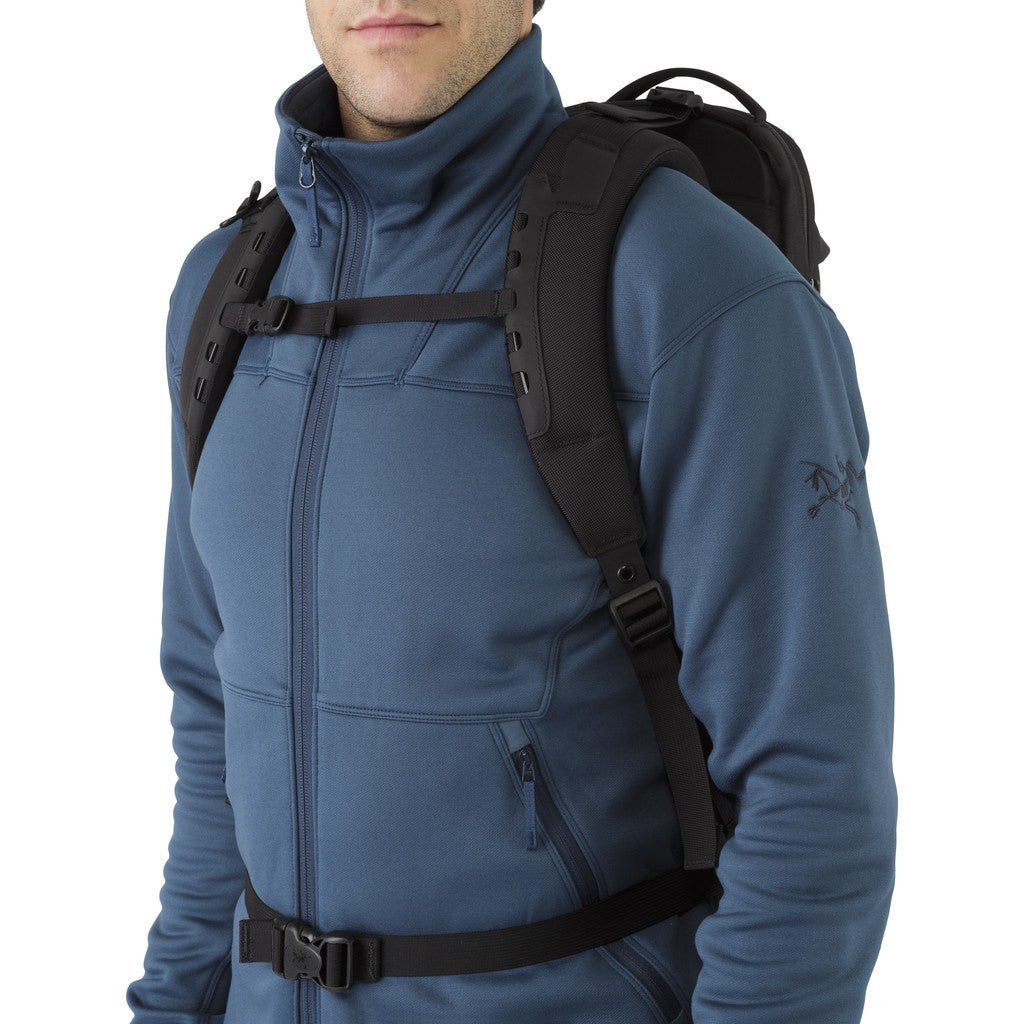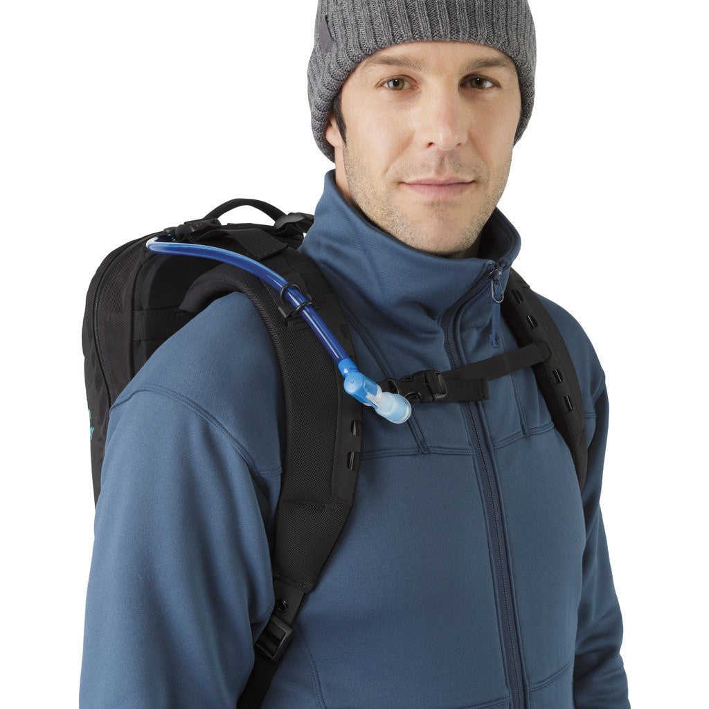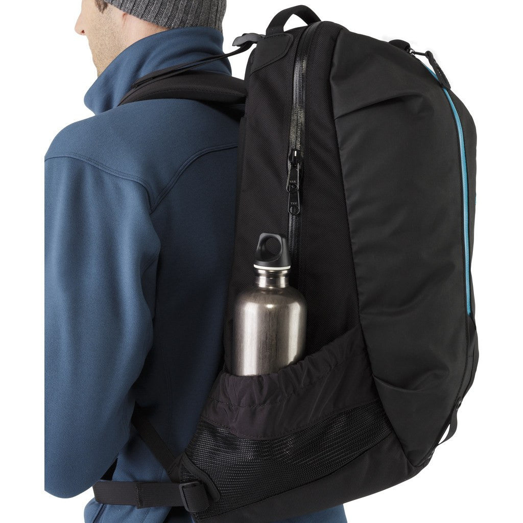 Strap on the Arc'teryx Arro 22 Backpack urban commuter style backpack with WaterTight® construction. This backpack features WaterTight® zippers and a tough Armourlite™ kangaroo pocket to repel weather and keep contents safe. The advanced materials and distinctive design of the Arro 22 Backpack in Black/Blue Tetra make it both sleek and functional.