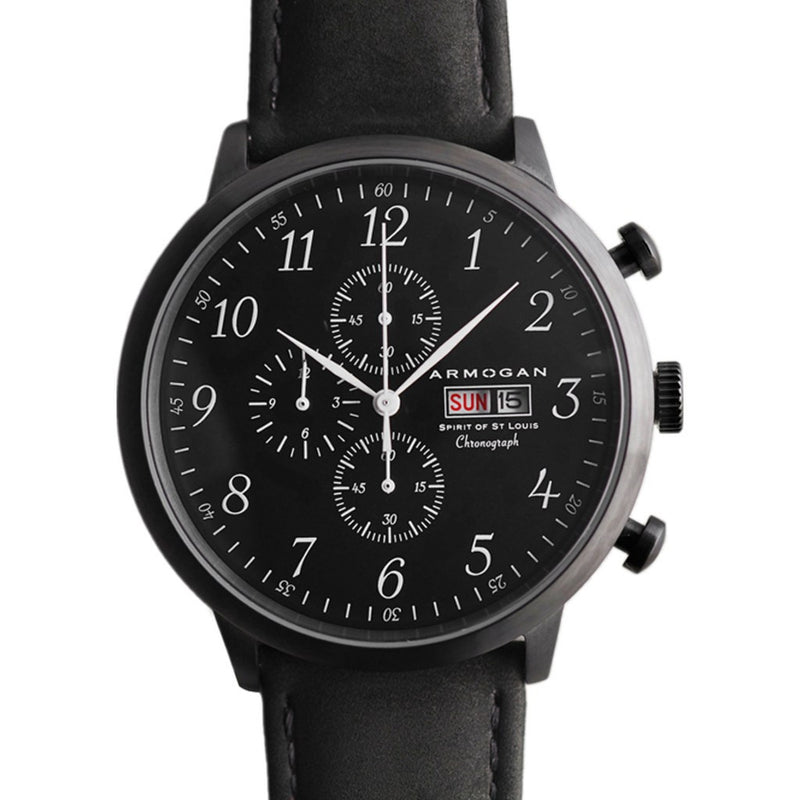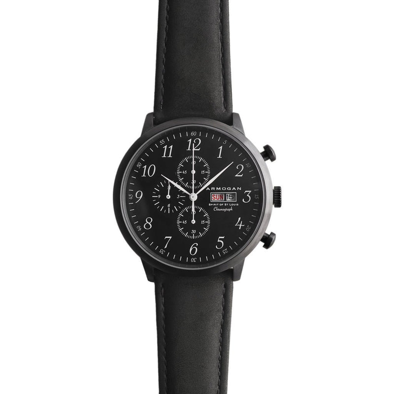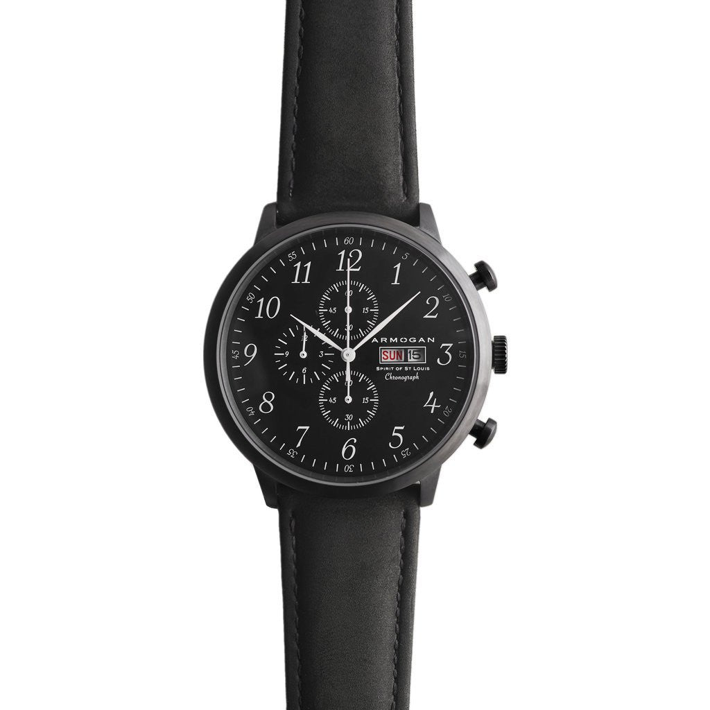 In May of 1927, Charles Lindberg flew the ever famous Spirit of St. Louis. This custom-built monoplane supported the first non-stop flight from New York to Paris, and inspired Armogan's creation of the Spirit of St. Louis Chronograph Watch. Featuring Miyota OS00 Chronograph movement, a stainless steel case, a day/date window, and a slim case design, this one-of-a-kind time piece is perfect for any occasion. Finished with a black suede leather strap, this watch will only get better with time.