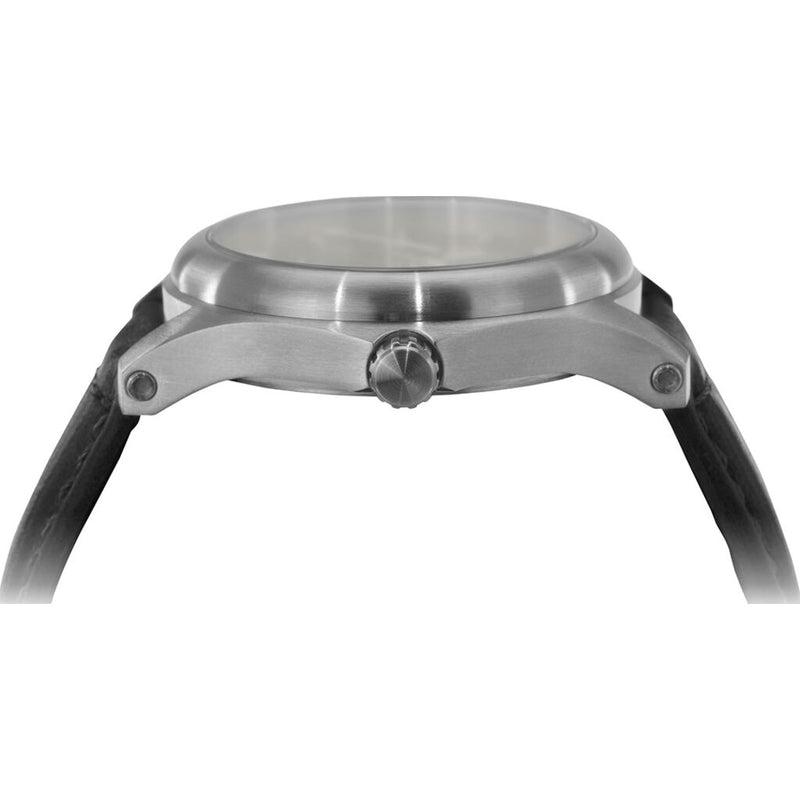 The case and all components of the watch are constructed out of hypoallergenic and durable 316L stainless steel. The screw-down crown and case back ensure adventure-ready water resistance of 100 meters. In lieu of the standard spring bar pins, heavy-duty screw bars secure the band firmly in place for strenuous activities.