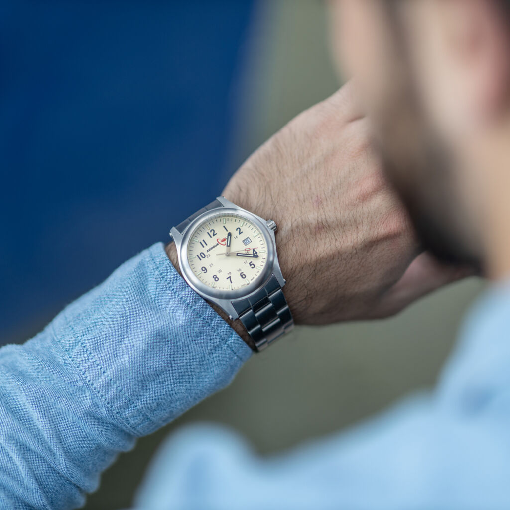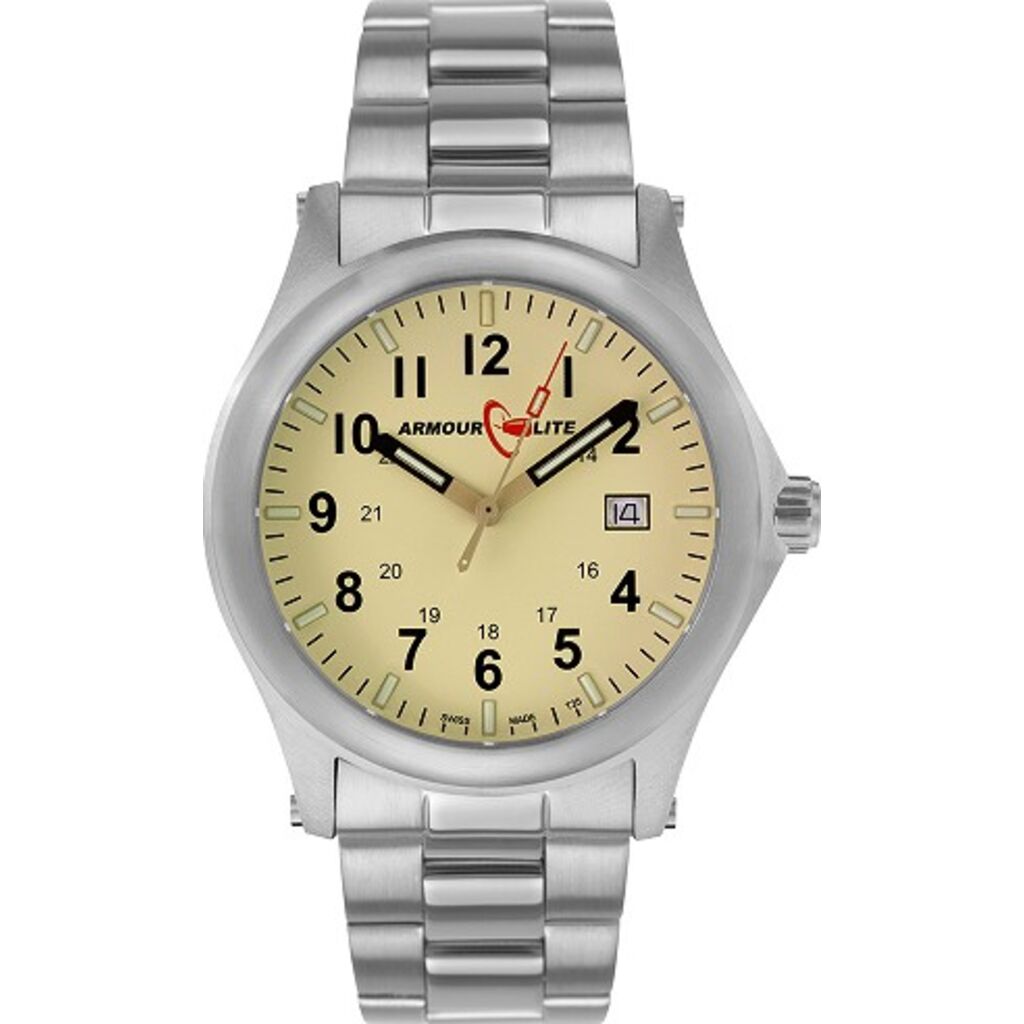 ArmourLite Field Series Stainless Steel Mens Watch | Diameter: 42mm Thickness: 10.8mm - Shatterproof Armourglass - Beige Dial