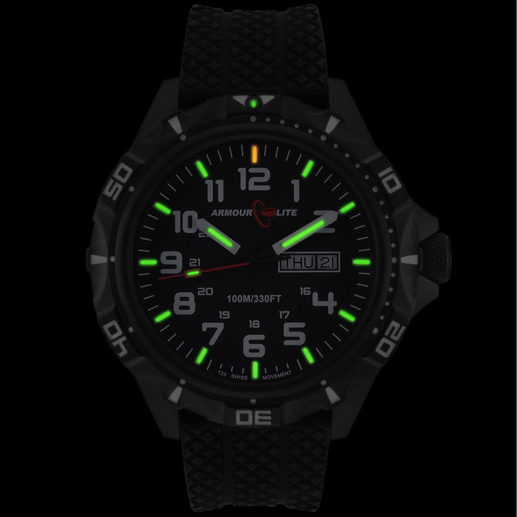 The Armourlite AL1412 Professional Watch is a durable timepieces with a shatterproof crystal resting on a stainless steel case and rubber band for comfort. This professional watch is durable and versatile with date function and tritium illumination for clear visibility in the lowest of light conditions.