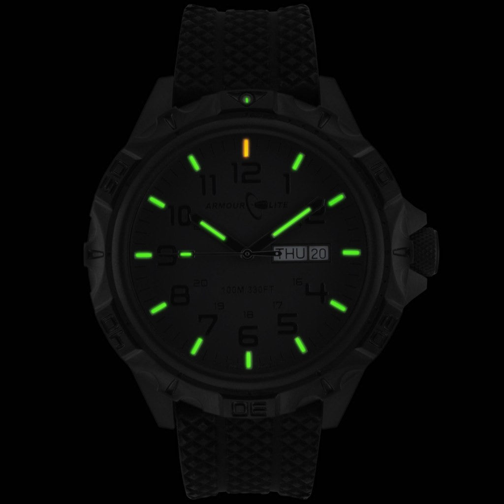 The Armourlite AL1414 Professional Watch is a durable timepieces with a shatterproof crystal resting on a stainless steel case and rubber band for comfort. This professional watch is durable and versatile with date function and tritium illumination for clear visibility in the lowest of light conditions.
