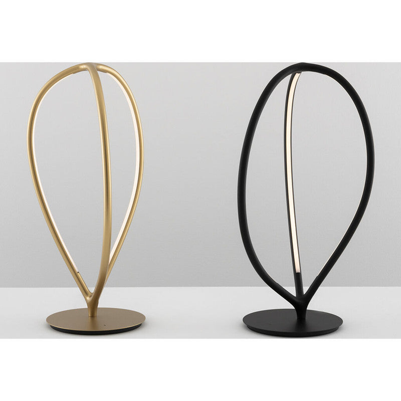 The Arrival Table Lamp is a sculptural piece of lighting made from delicate lines and curves. It features an Aluminum surface on the outside, while diffusing soft light on the inside. Optical touch dimmer included on base. These are elegant lighting tools, perfect for individual use or as a series combining different versions together to create a modern, sculptural work of art and light.